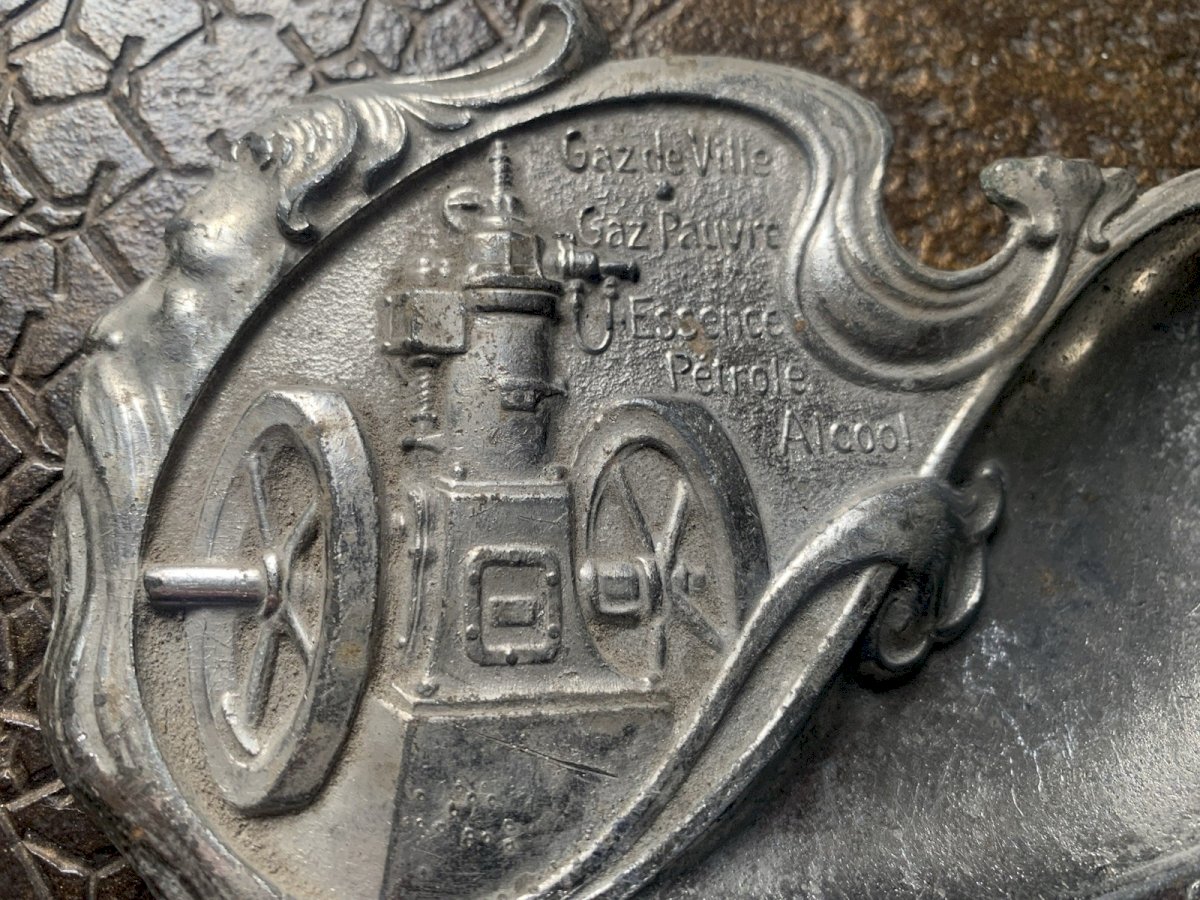 Cendrier publicitaire Période art nouveau fin XIXe Profil du Dieu école Gaz de ville gaz pauvre essence pétrole alcool Moteurs Millot Gray Hte Saône Bel état d'usage et d'ancienneté Longueur:14,6cm Largeur:9,5cm État:OccasionObjet ayant été utilisé. les éventuelles imperfections. Epoque:Vintage (1900-1970) Type:Cendrier Marque:Moteurs Millot Gray Original/reproduction:Original Sous-type:publicitaire Pays de fabrication:France Style:Publicitaire Matière:Métal