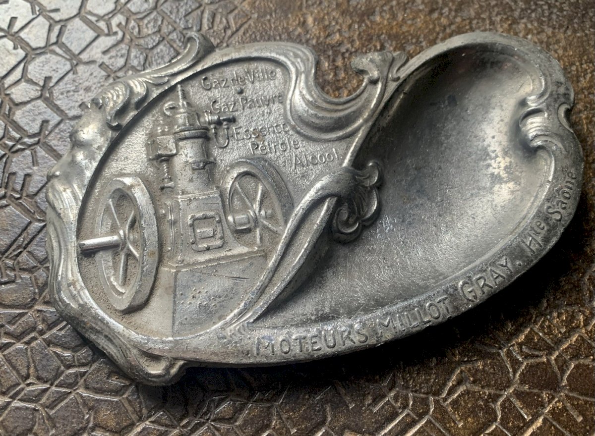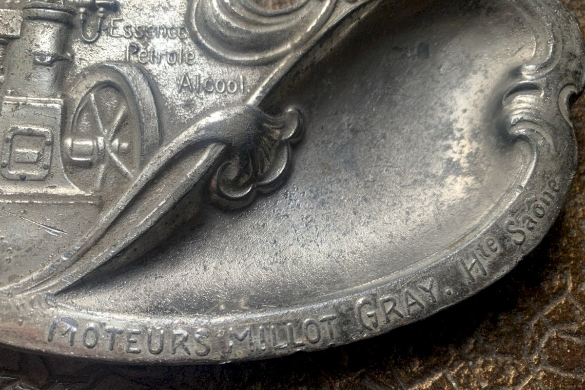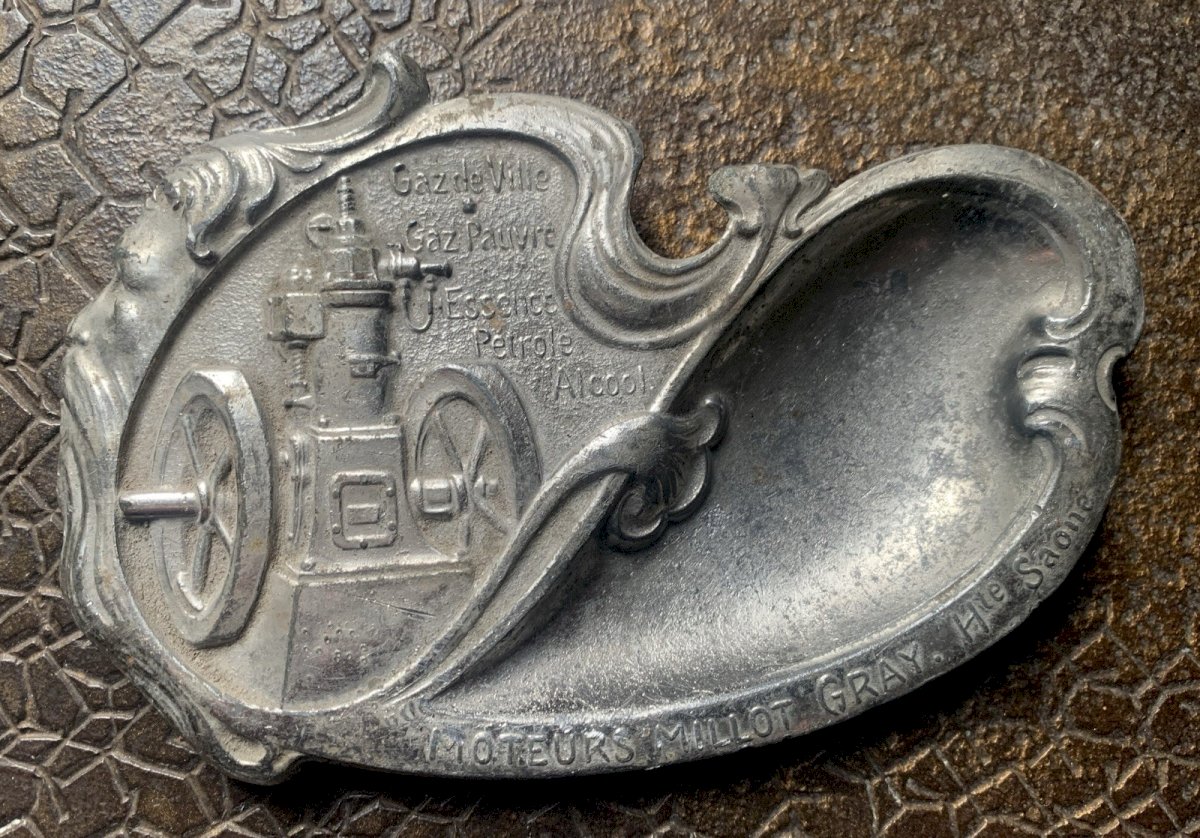 Cendrier publicitaire automobile moteur Millot à Gray gaz essence pétrole alcool