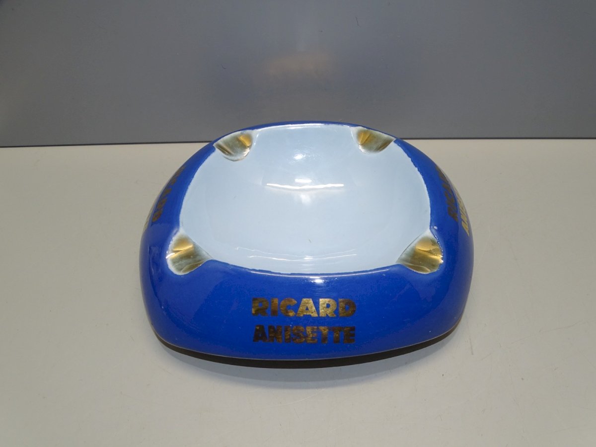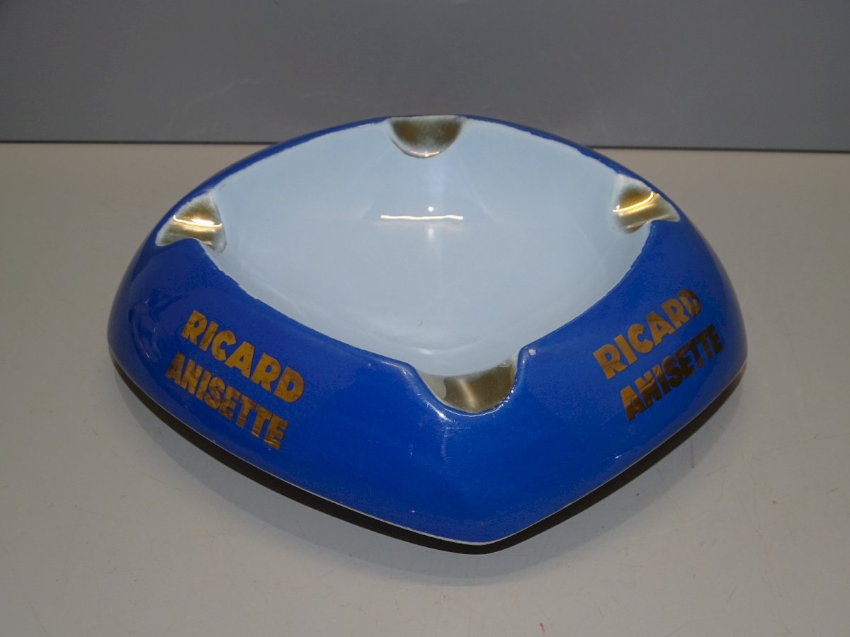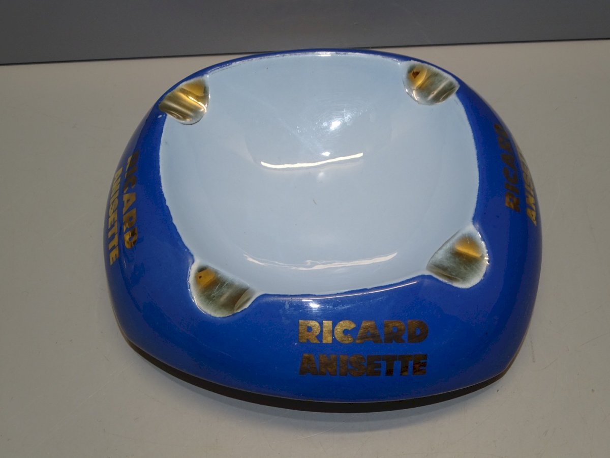 ancien cendrier publicitaire Ricard Anisette céramique Ricard - à noter petite usure dorure ( voir photos ) - En bon état d'usage, sorti de grenier - Réf: 1V251219/42  - + ou - 20,5 x 21,5 cm - Hauteur 6 cm -  Poids 0,730 kg -   Pour toutes questions :  EXPEDITION POSSIBLE EN MONDIAL RELAY ou COLISSIMO sur demande TRES BON EMBALLAGE GARANTI       MERCI de BIEN REGARDER TOUTES les PHOTOS car ELLES FONT PARTIE INTEGRANTE de la DESCRIPTION et PERMETTENT de VOIR l'OBJET AU MIEUX  avec SES PETITS DEFAUTS EVENTUELS - État:Occasion: Objet ayant été utilisé. Consulter la description du vendeur pour avoir plus de détails ...Occasion: Objet ayant été utilisé. les éventuelles imperfections.