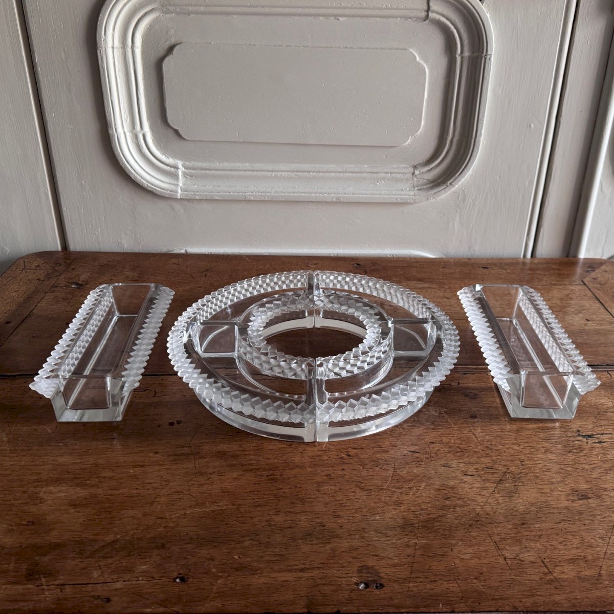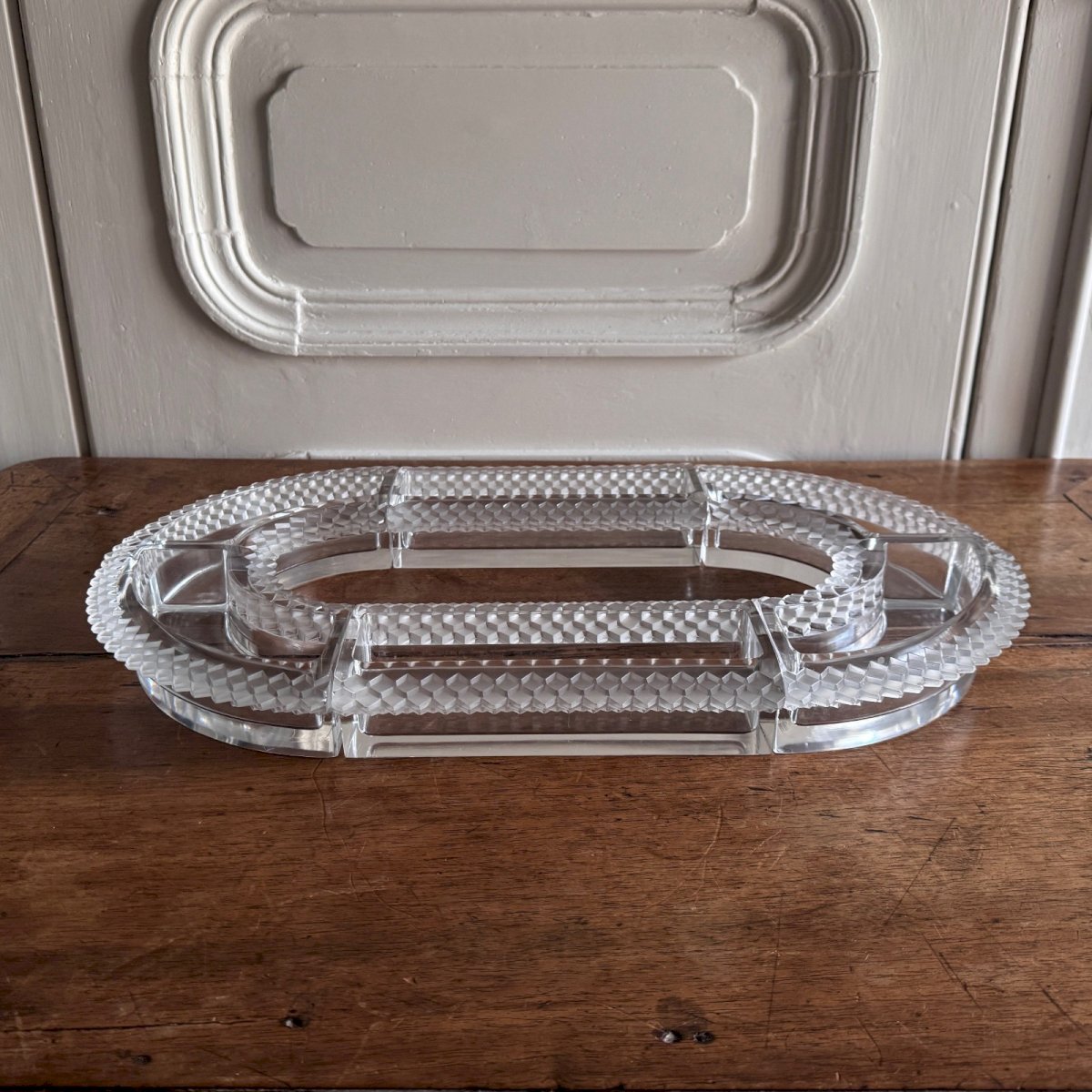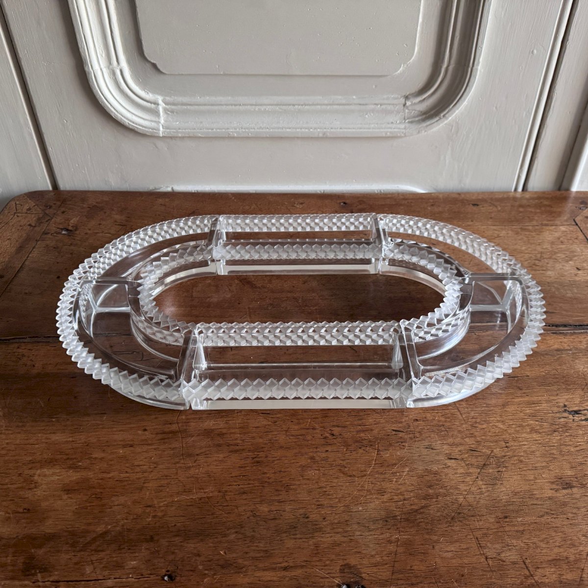 Centre de table par Lalique France modèle Valenciennes  M3764 Ce centre de table modèle Valenciennes réalisé par la maison Lalique France est de belle facture. Nous signalons deux minimes égrenures sur le pourtour, des rayures dues à l'usage. Nos photos vous permettent d'apprécier la qualité de l'objet. Pour l'état, merci de bien détailler les photos. N'hésitez pas à zoomer . Les photos font partie intégrante de la description. Dimensions : Hauteur : 5 cm - Ovale  Largeur : 49 cm Profondeur : 31 cm - Cercle Diamètre : 30 cm A :  74PJLVL64D P :  1651411   Je reste à votre disposition pour toute question. Marque:Lalique Type:Objet de vitrine, Décoratif Pays d'origine:France Sous-type:Centre de table Hauteur:5 cm Matière:Verre Longueur:cm Largeur:49 cm