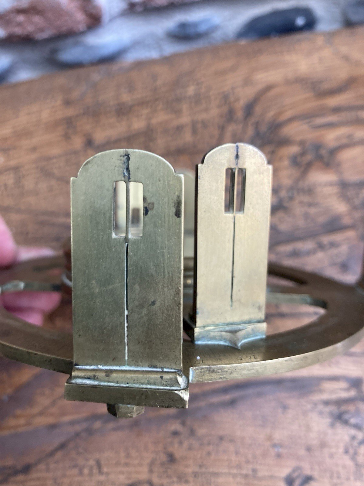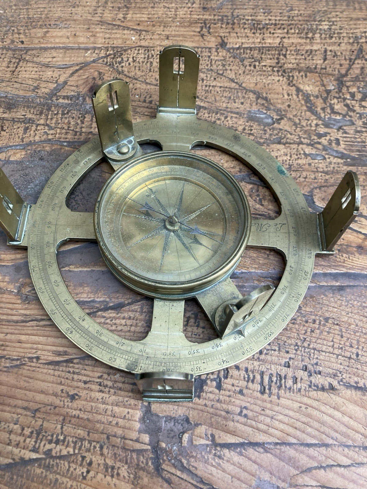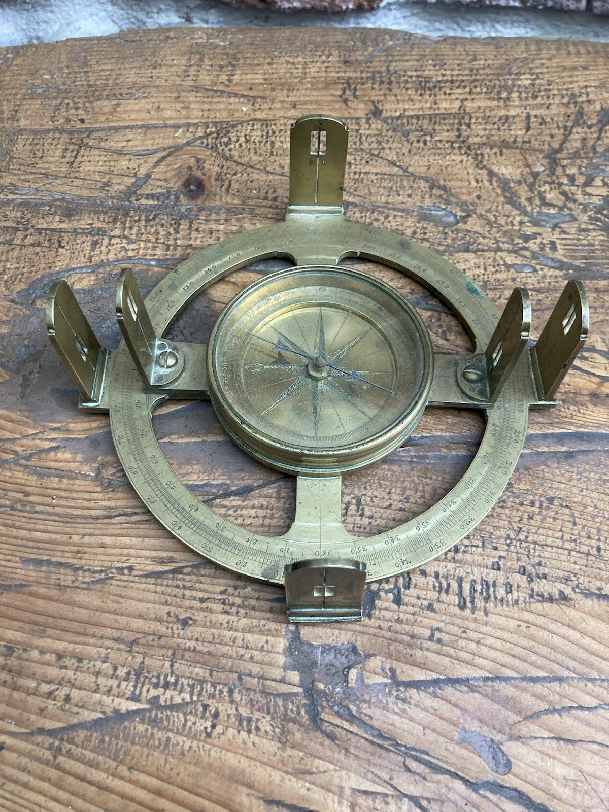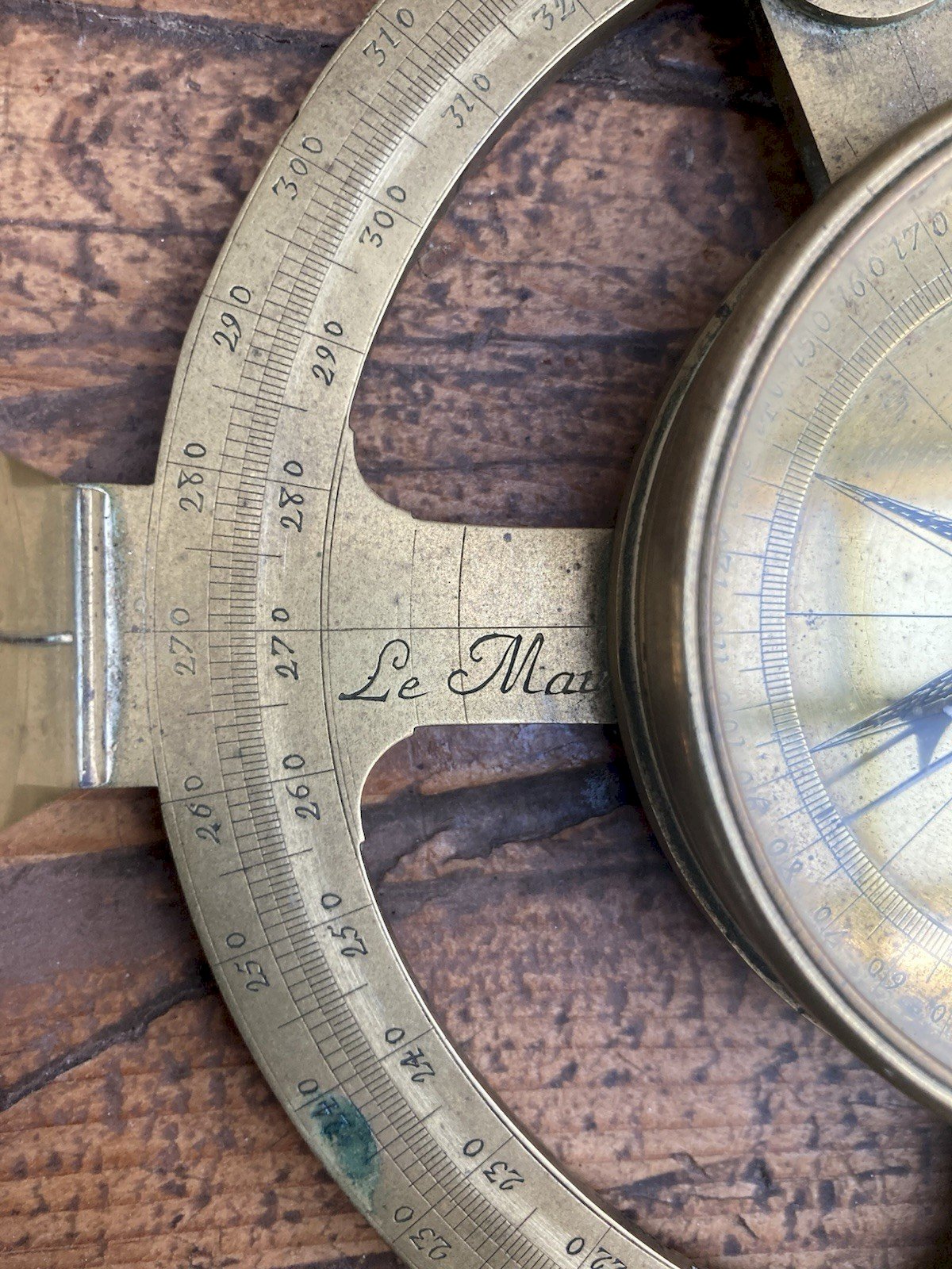 A HOLLAND CIRCLE, FRANCE, CIRCA 1740. SIGN. LE MAIRE FILS PARIS. ENGRAVED BRASS. BASE WITH LARGE CENTRAL COMPASS, WINDROSE AND DIRECTIONS, 2 SIGHTS. À noter, la signature semble être en dessous de la boussole. Quelques lettres apparaissent MAI Sous- type:Civil Type:Boussole, Compas Pays de fabrication:France Matière:Laiton
