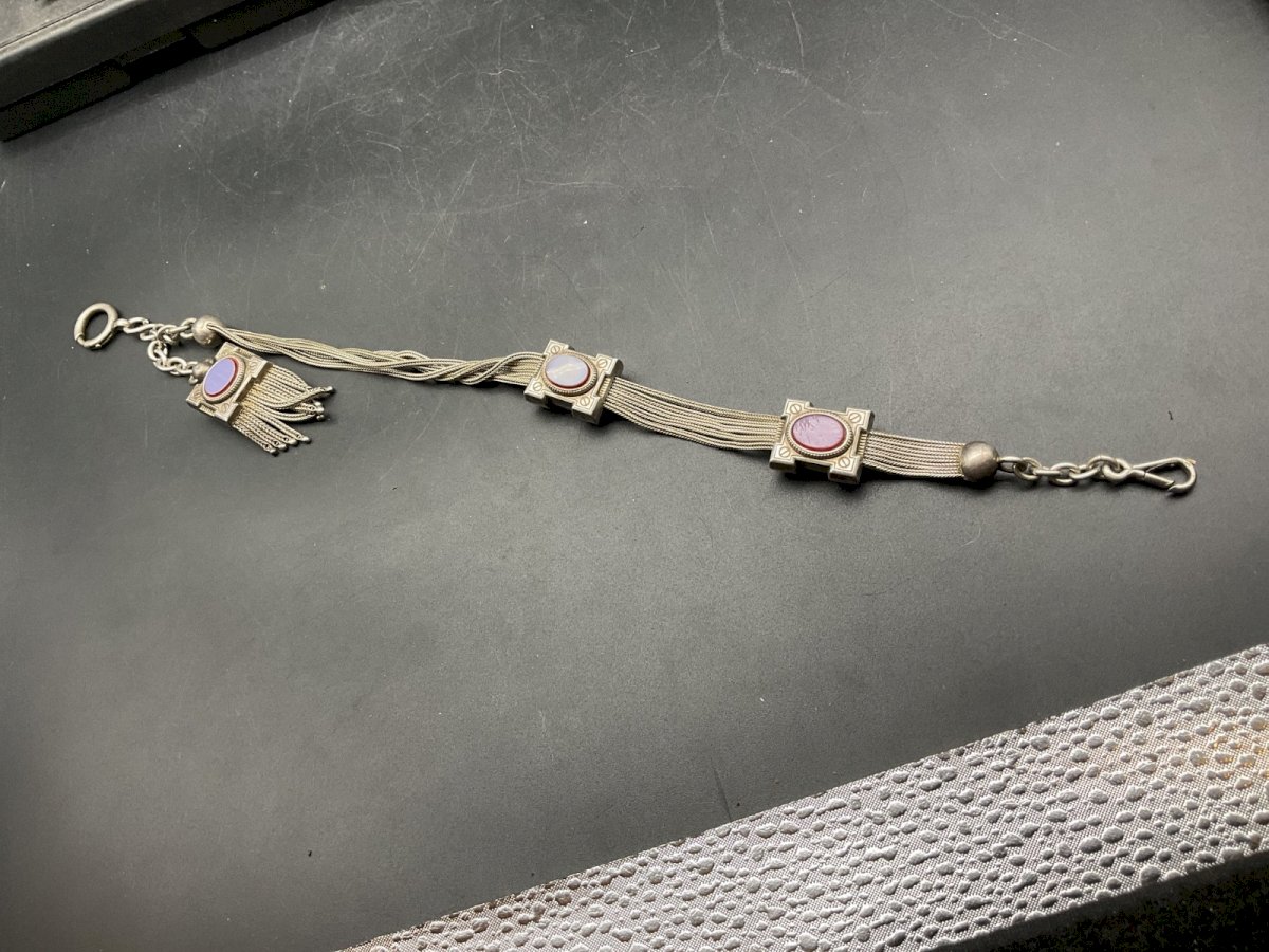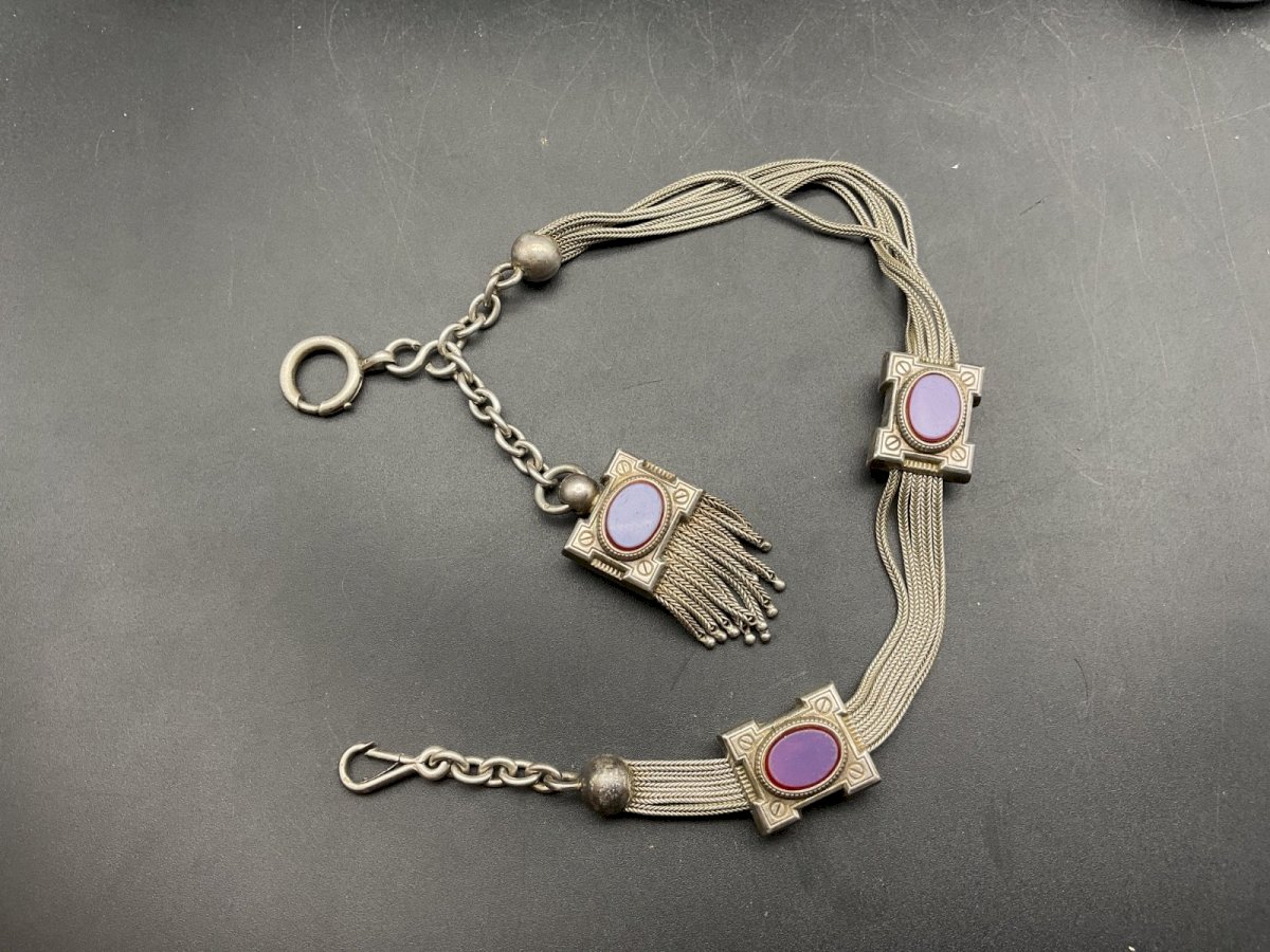 Chaine de Montre CHATELAINE en Argent et Email XIXème