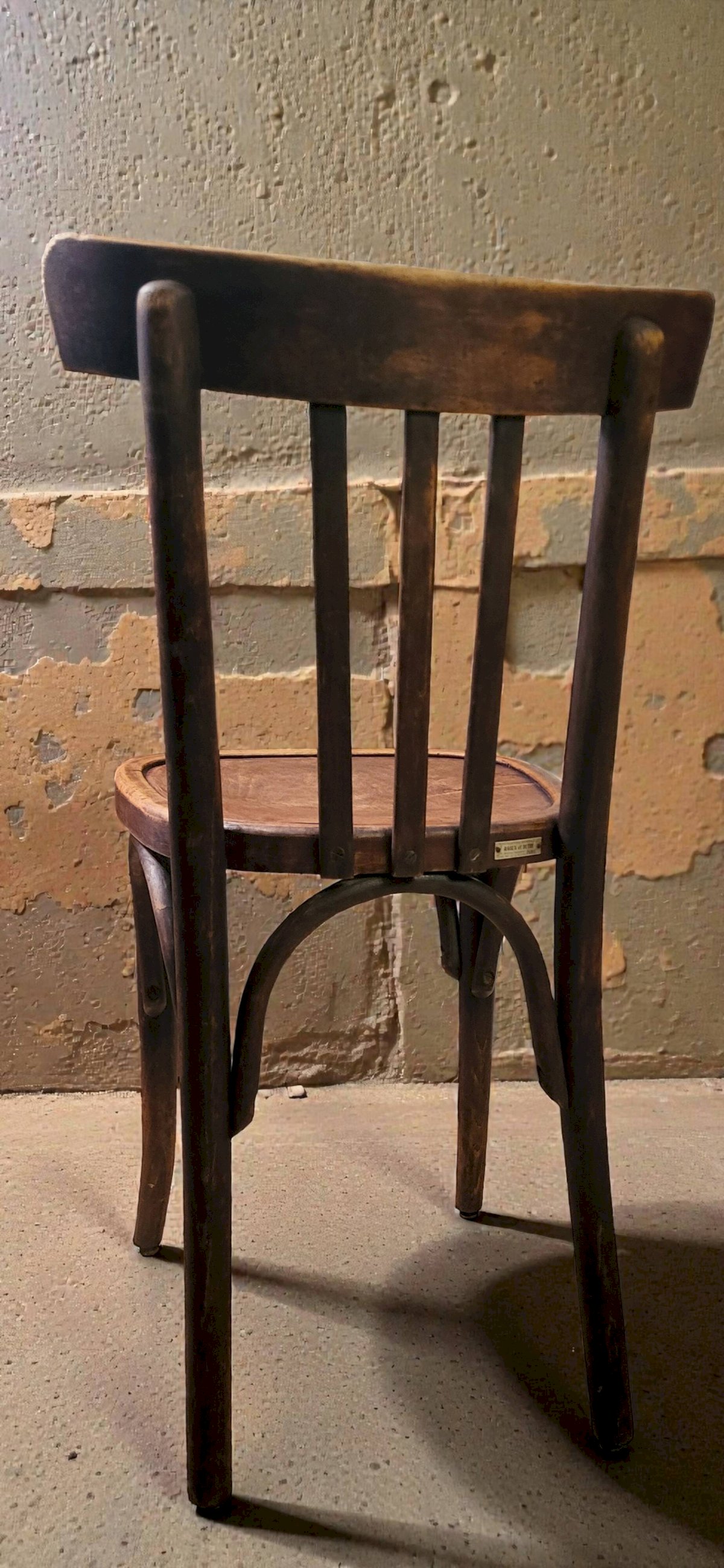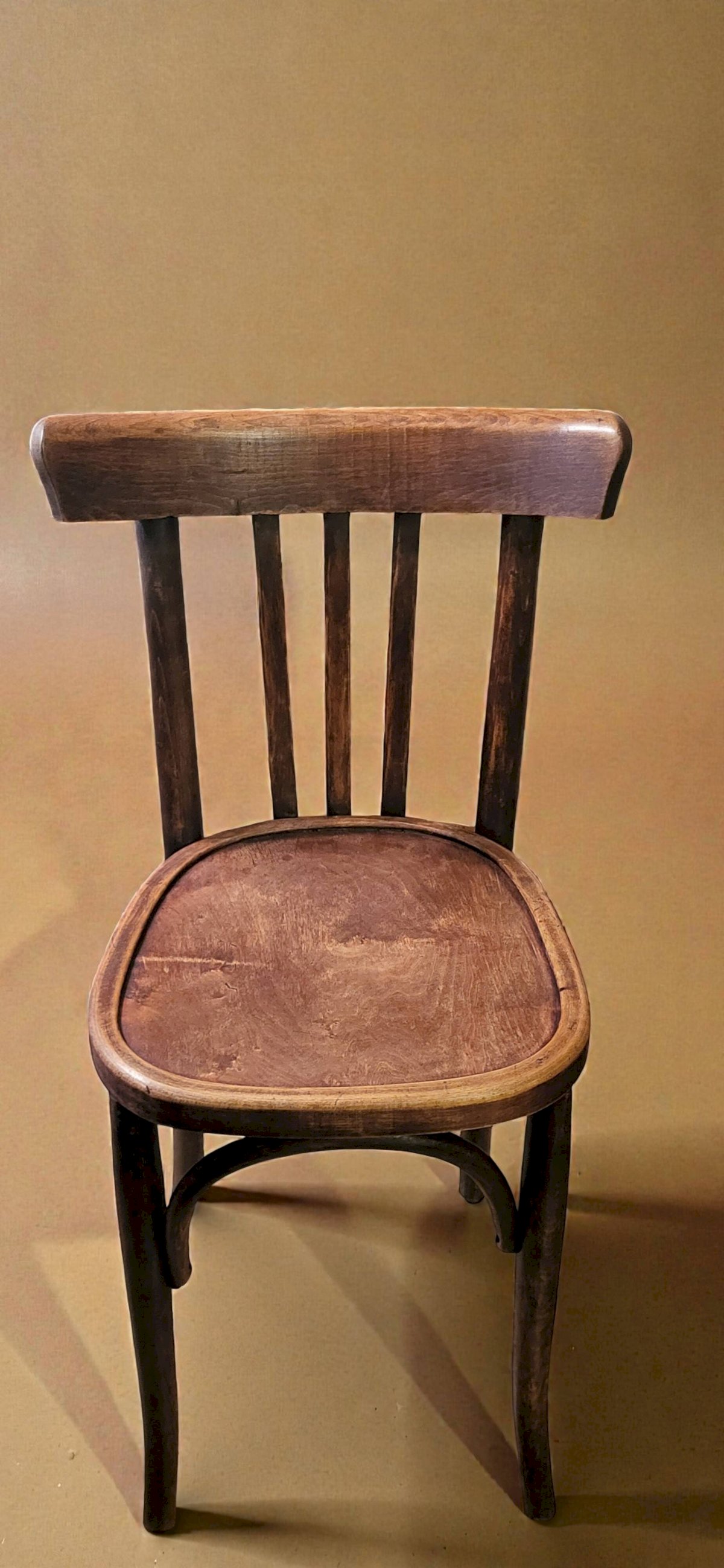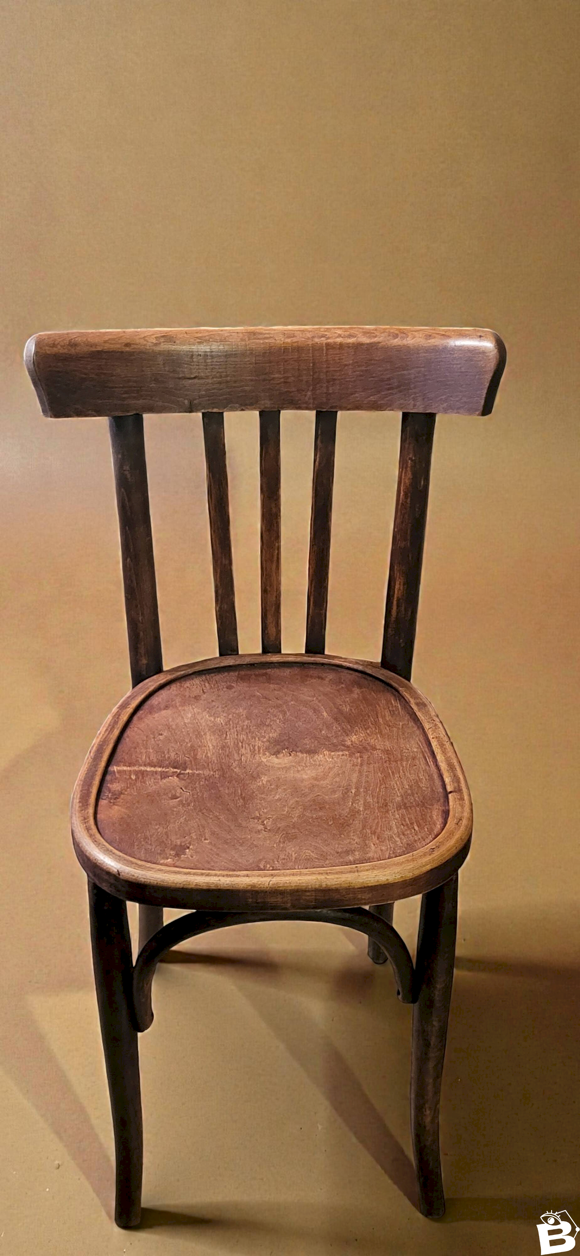 Chaise Baumann 1930'sHauteur 82 cmHauteur assise 48,5 cmLargeur 37 cmProfondeur 39 cmEn bon état / Belle patine / Chaise solide.Etiquette métal au dos / traces de signature baumann