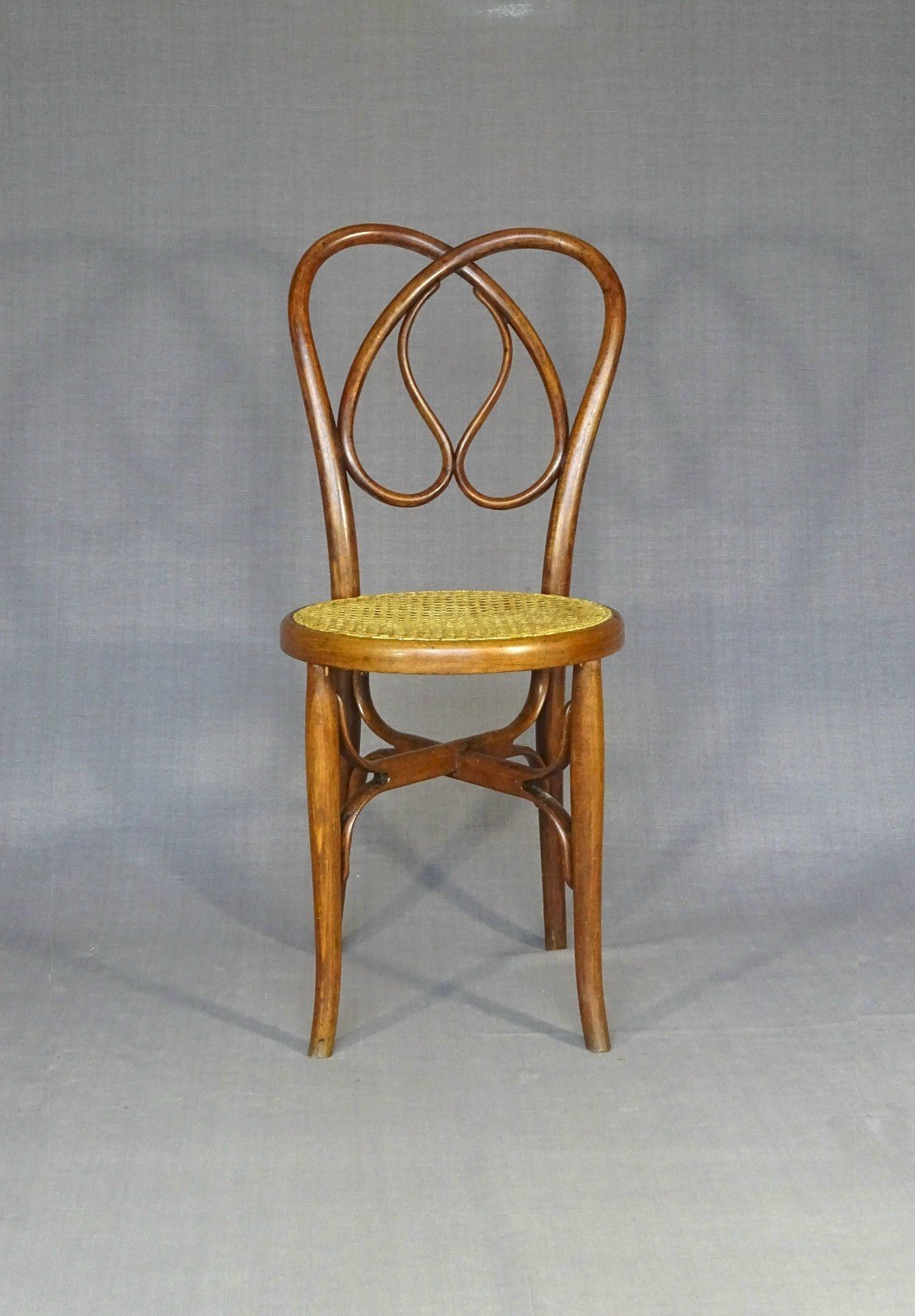 Chaise N° 41 de fabrication espagnole dans les années 1920/25. On trouve fréquemment, dans cette configuration la N°41 de Féliu Ventura dont la pièce de maintien des pieds est lourde et trop chargée de volutes en entrelacs. Voici celle de Luis Suay (Valencia) dont l’architecture globale est la même mais est équipée d’une pièce de maintien des pieds en croix, brevetée, solide et originale. Hauteur totale : 88 cm - diamètre assise 38 cm - hauteur d'assise : 47 cm. Tout petit morceau d’étiquette qui nous permet de connaitre sa provenance. Plus de photos et renseignements sur demande. Livraison France et Europe ou retrait Alsace. Couleur:brun Nombre de pièces:1 Type:Chaise Marque:Suay Origine:Espagne Période:Design du XXème Sous-type:Bistrot , demi chaise Pays d'origine:Espagne Matière:Hêtre Style:Legno curvato