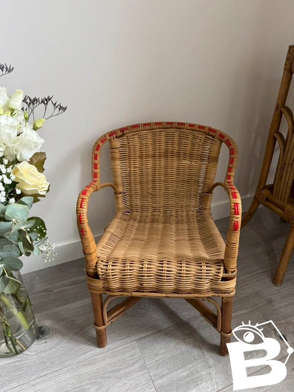 Joli tabouret et Chaise enfant style Audoux Minet bois et tressage corde 60/70