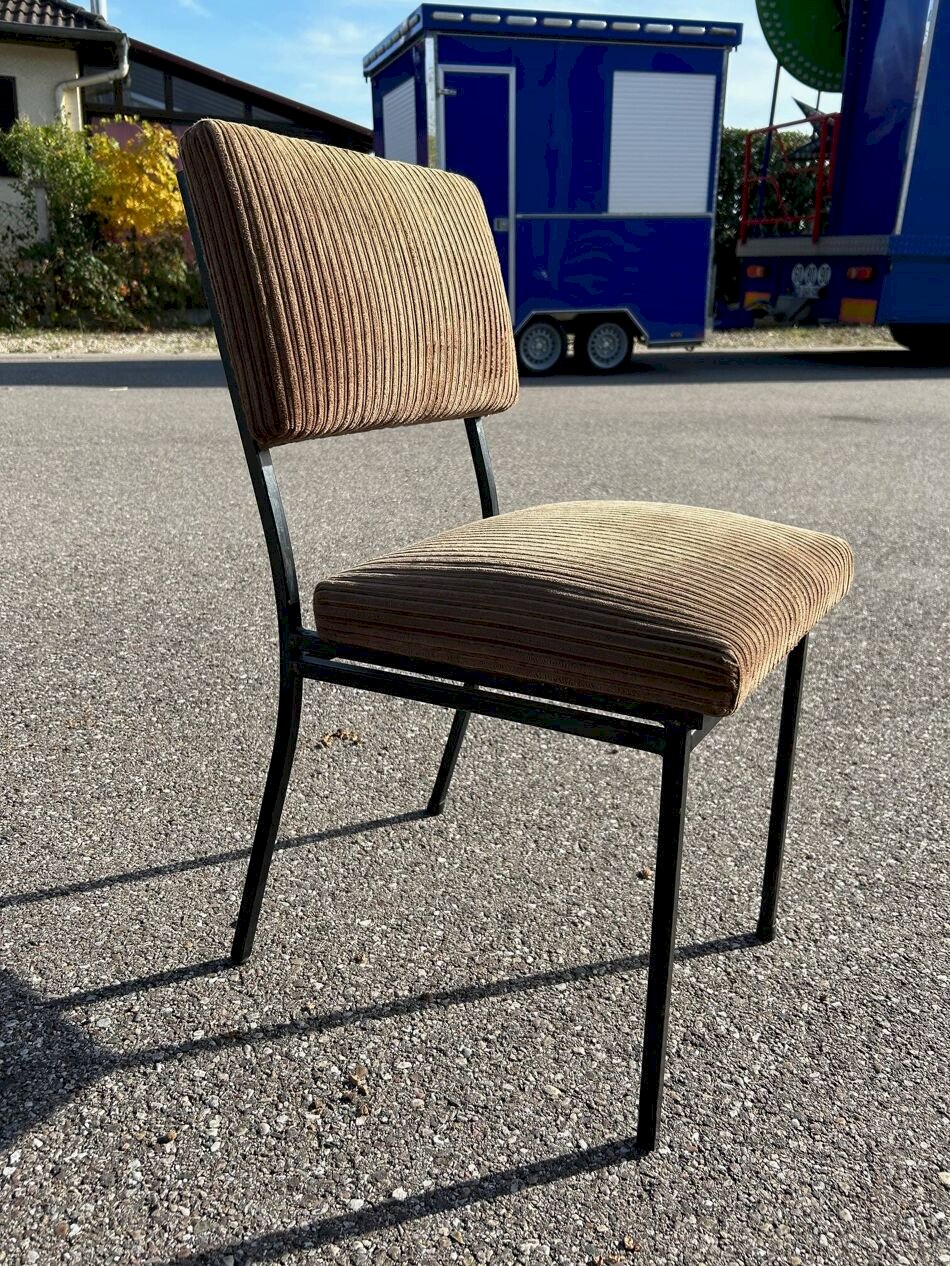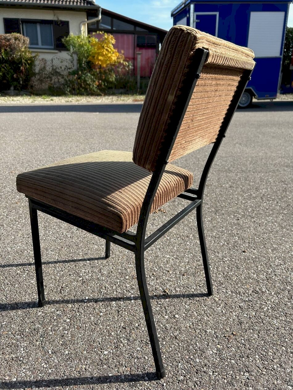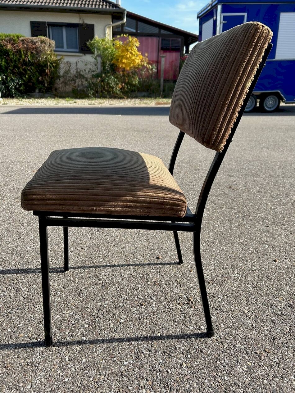 Chaise des années 50 en métal laqué noir et tapisserie velours marron.