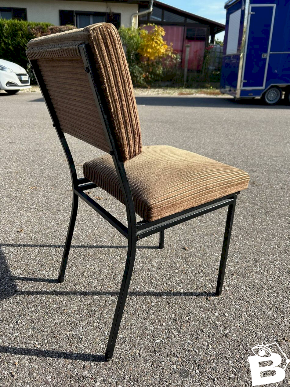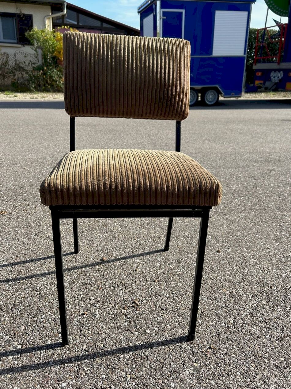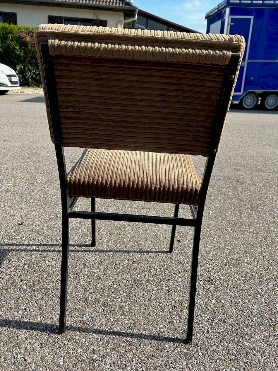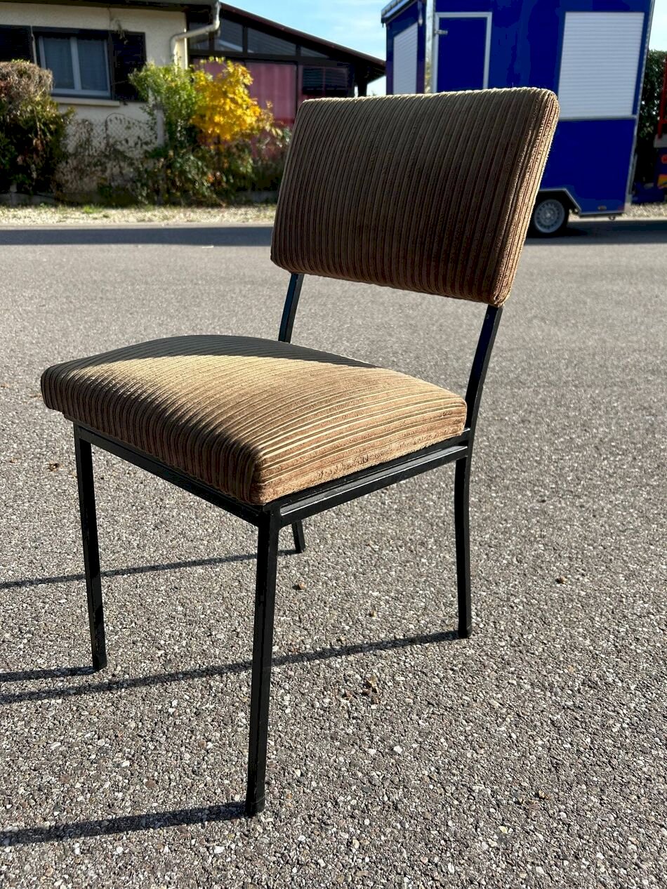 Chaise des années 50 en métal laqué noir et tapisserie velours marron.