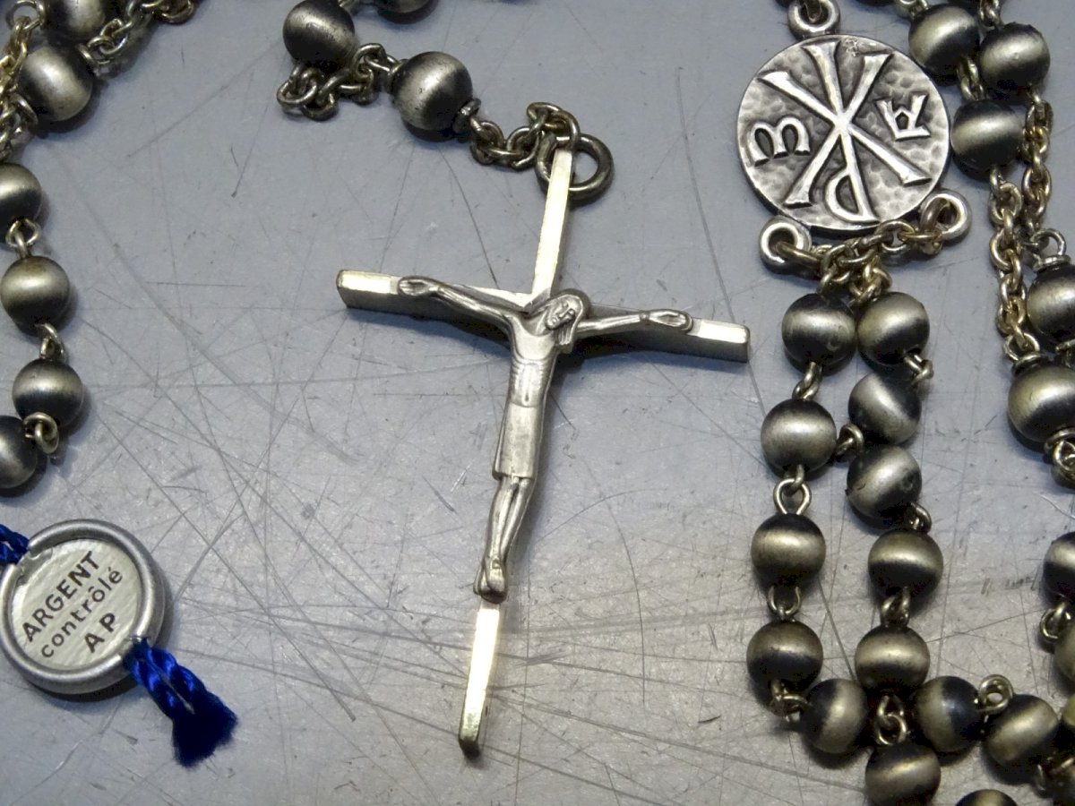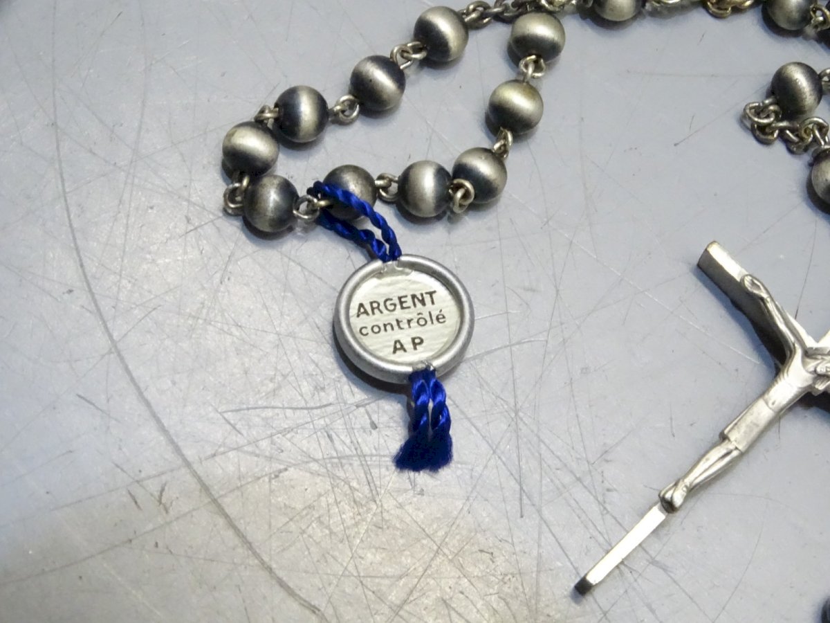 -CHAPELET ANCIEN ARGENT massif NEUF poinçon crabe & orfèvre RELIGION CHRIST