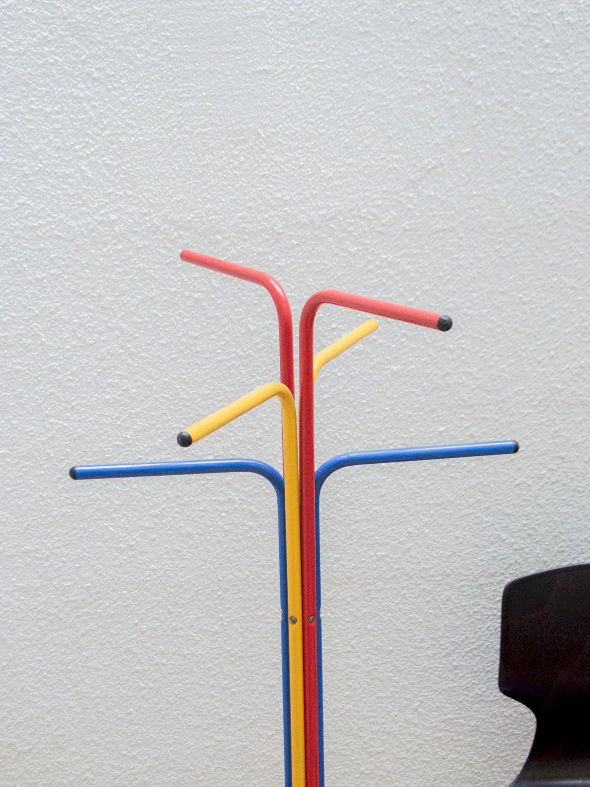Adoptez ce porte‑manteau vintage en métal signé Ikea, aux teintes bleu, rouge et jaune, inspiré du modèle "Locus Solus" dessiné par Gae Aulenti dans les années 1960. Sa silhouette graphique et sa hauteur affirmée offrent un point d'accroche pratique pour manteaux et accessoires, parfait pour une entrée ou un bureau au style pop moderniste. Le contraste des couleurs vives sur la structure métallique crée une atmosphère ludique et élégante, apportant caractère et fonctionnalité à votre espace. Éclats sur les pieds. Hauteur : 120 cm Diamètre du piétement : 53 cm Petite histoire du porte-manteaux Le terme "porte-manteaux" apparaît au XVIIIe siècle, bien que le concept remonte à l'Antiquité. Initialement de simples crochets fixés aux murs, il évolue en un support élégant et fonctionnel, souvent sur pied. D'abord présent dans les halls des maisons bourgeoises, il accueille manteaux et chapeaux, devenant rapidement un élément incontournable de l'aménagement intérieur. Aujourd'hui, le porte-manteaux s'adapte à tous les styles, alliant praticité et esthétique. État:Occasion: Objet ayant été utilisé. Objet présentant quelques marques d'usure superficielle, ...Occasion: Objet ayant été utilisé. Objet présentant quelques marques d'usure superficielle, entièrement opérationnel et fonctionnant correctement. Il peut s'agir d'un modèle de démonstration ou d'un objet retourné en magasin après une courte période d'utilisation. les éventuelles imperfections. Marque:Debongout Type:Produit chiné Matériau:Métal Style:Contemporain