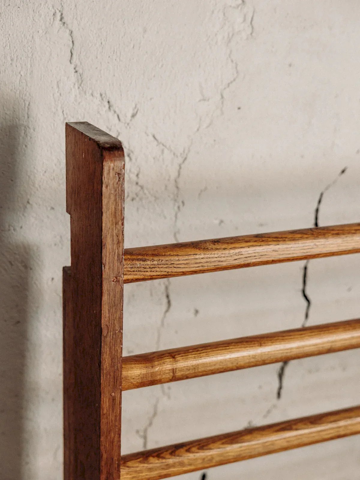 Découvrez ce porte-serviette ou suspension en bois, un véritable clin d'œil au design vintage, ancien espalier de gymnastique. Parfait pour ajouter une touche originale et rétro à votre intérieur, il combine à la fois fonctionnalité et style. Idéal pour organiser vos serviettes, vos manteaux, écharpes ou sacs, ou même comme pièce décorative dans un hall, une entrée ou un salon. Sa structure en bois apporte chaleur et authenticité à votre espace. Largeur : 90 cm Hauteur : 126 cm Profondeur : 14 cm Hauteur entre les barreaux : 9,5 cm État:Occasion: Objet ayant été utilisé. Objet présentant quelques marques d'usure superficielle, ...Occasion: Objet ayant été utilisé. Objet présentant quelques marques d'usure superficielle, entièrement opérationnel et fonctionnant correctement. Il peut s'agir d'un modèle de démonstration ou d'un objet retourné en magasin après une courte période d'utilisation. les éventuelles imperfections. Marque:Debongout Type:Produit chiné Matériau:Bois Style:Contemporain