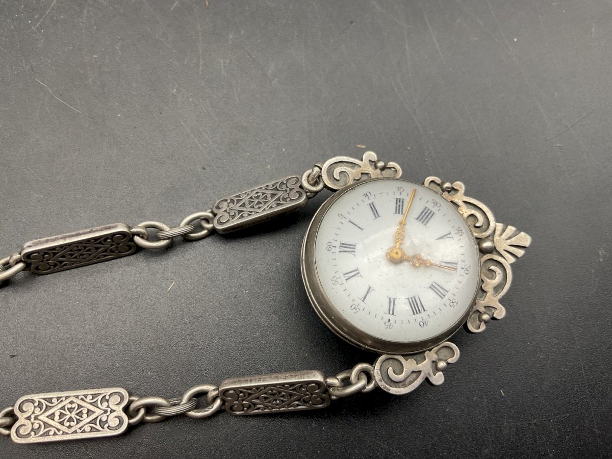 CHÂTELAINE Clavet de Châtelaine et Montre Argent, XIXème Napoleon III . Manque le mécanisme de la montre  Diamètre pour montre Max 28,4mm Longueur de la châtelaine 15cm État:Occasion: Objet ayant été porté. ...Occasion: Objet ayant été porté. les éventuelles imperfections. Couleur dominante:Argenté Matière:Argent Métal:Argent