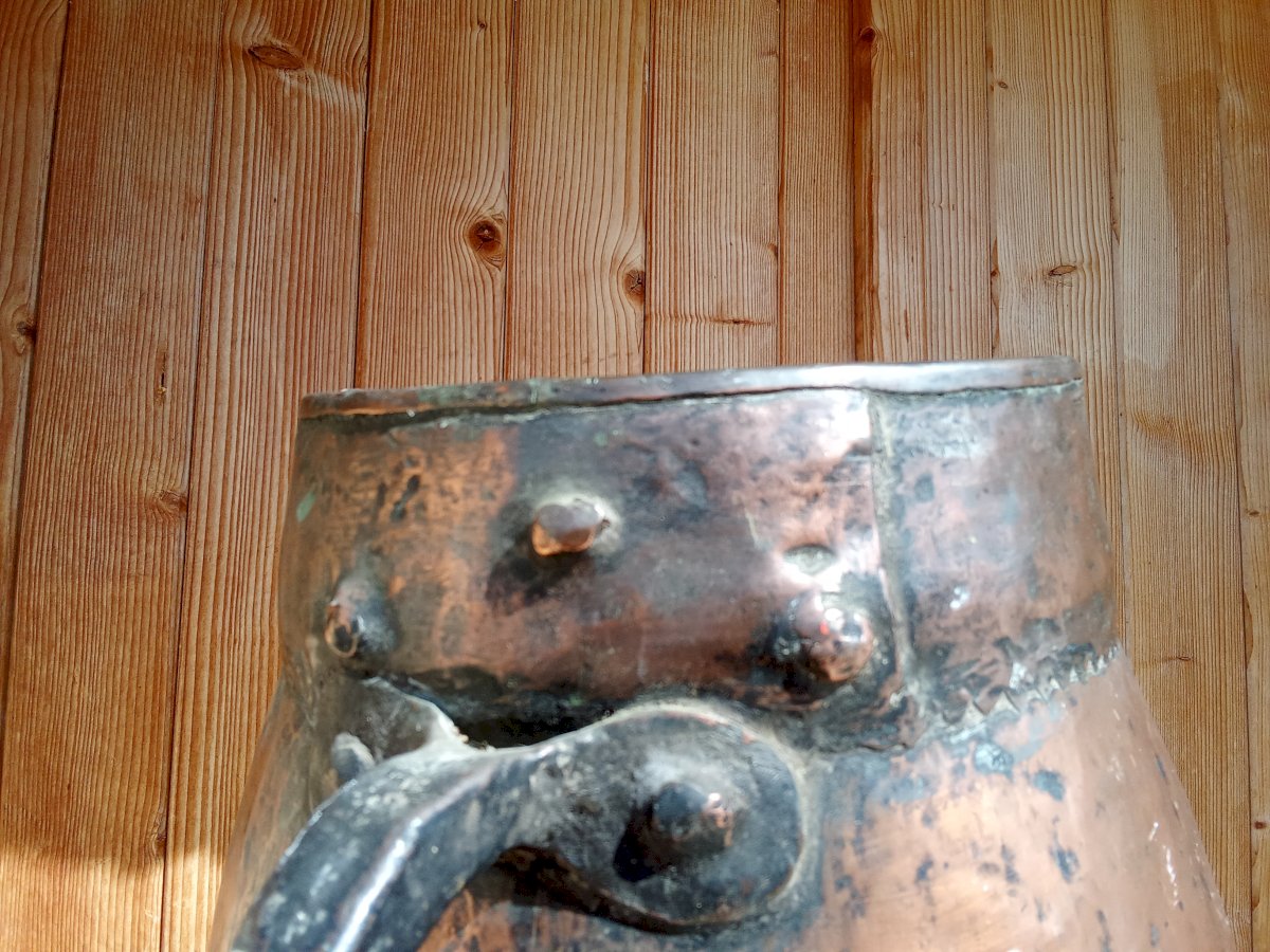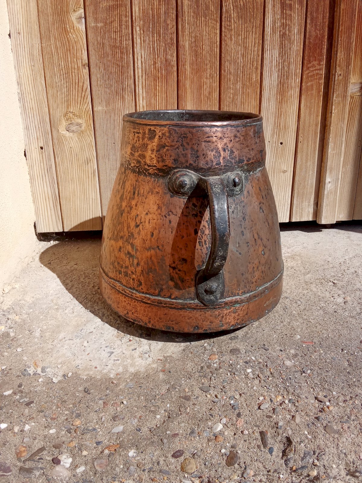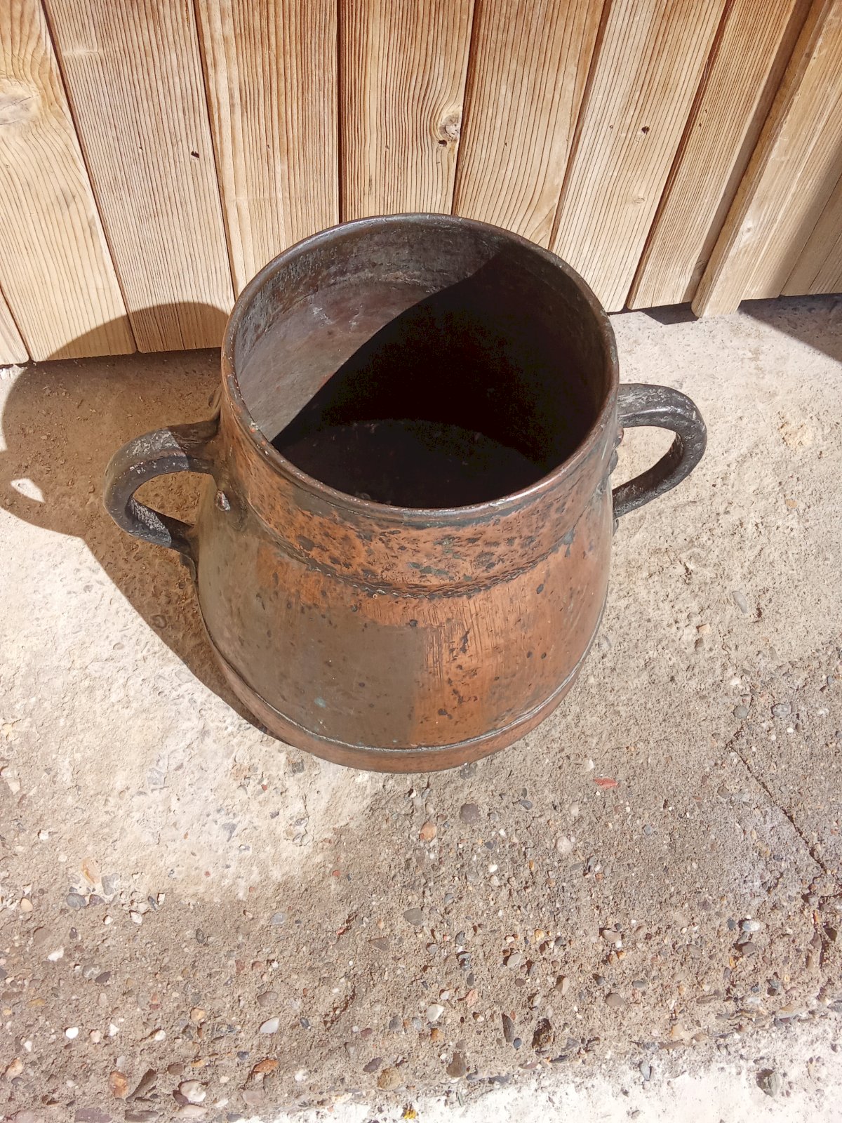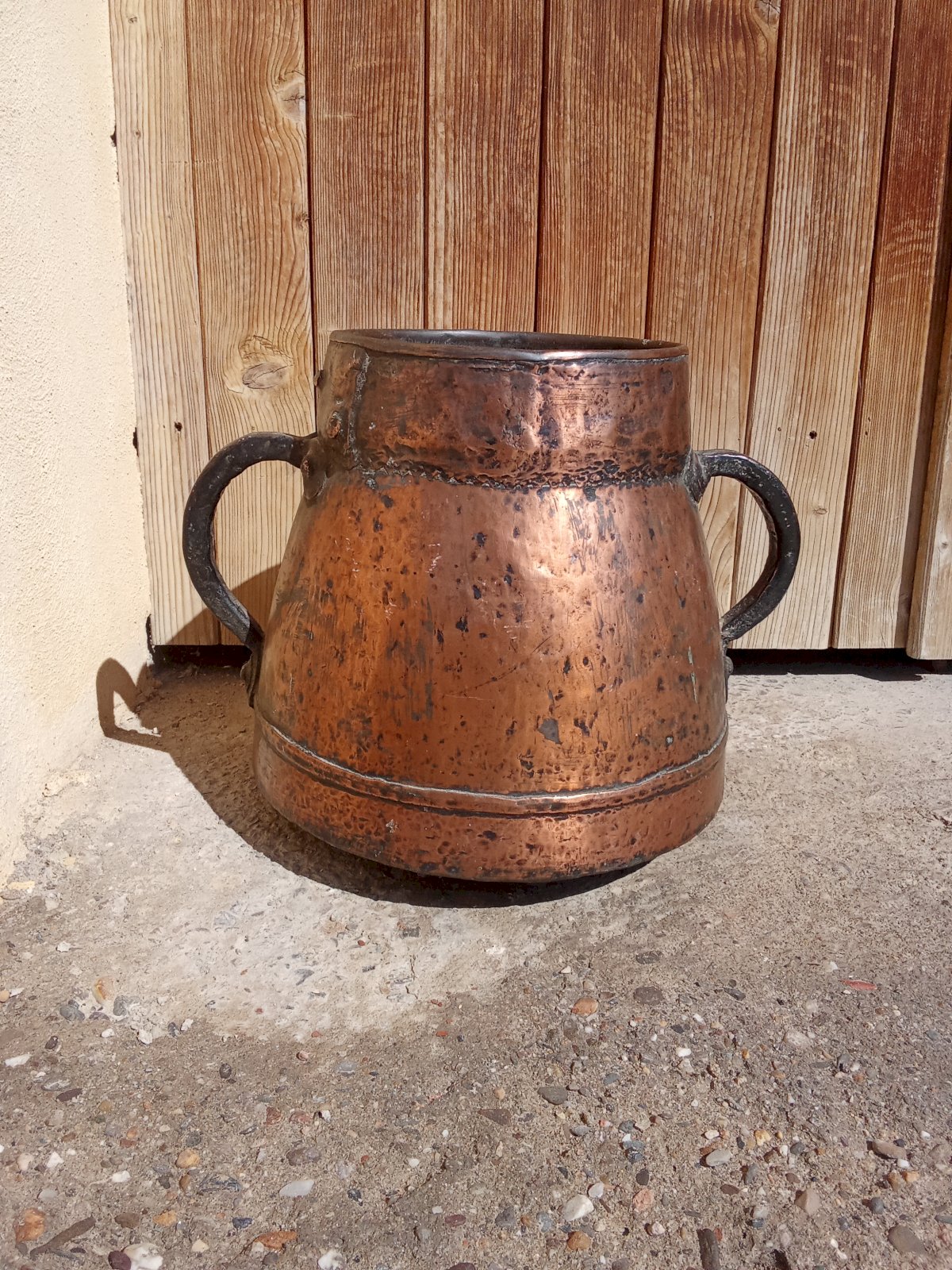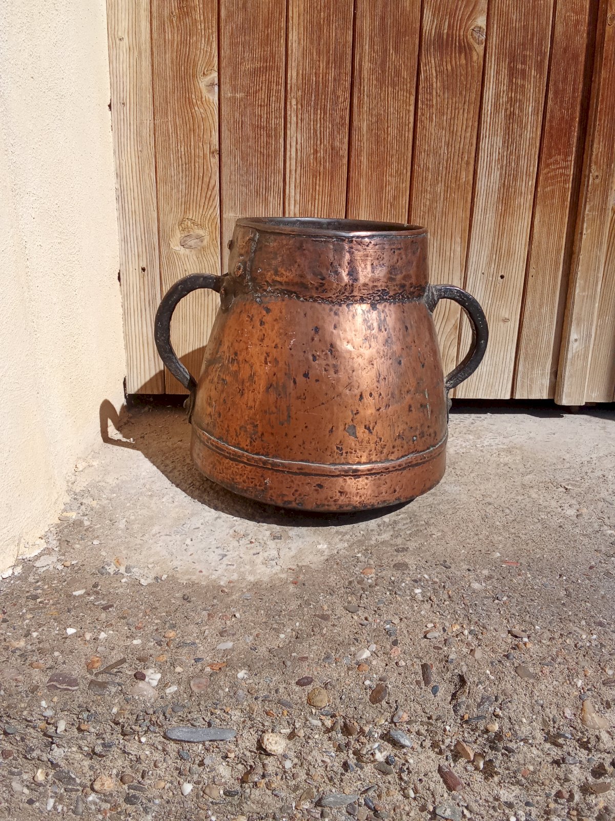 Superbe chaudron ancien en cuivre . Il est lourd ,rien a voir avec les chaudrons habituel. Il a une patine qui parle pour Lui. Dimensions : 31 cm de large; 30 cm de haut.