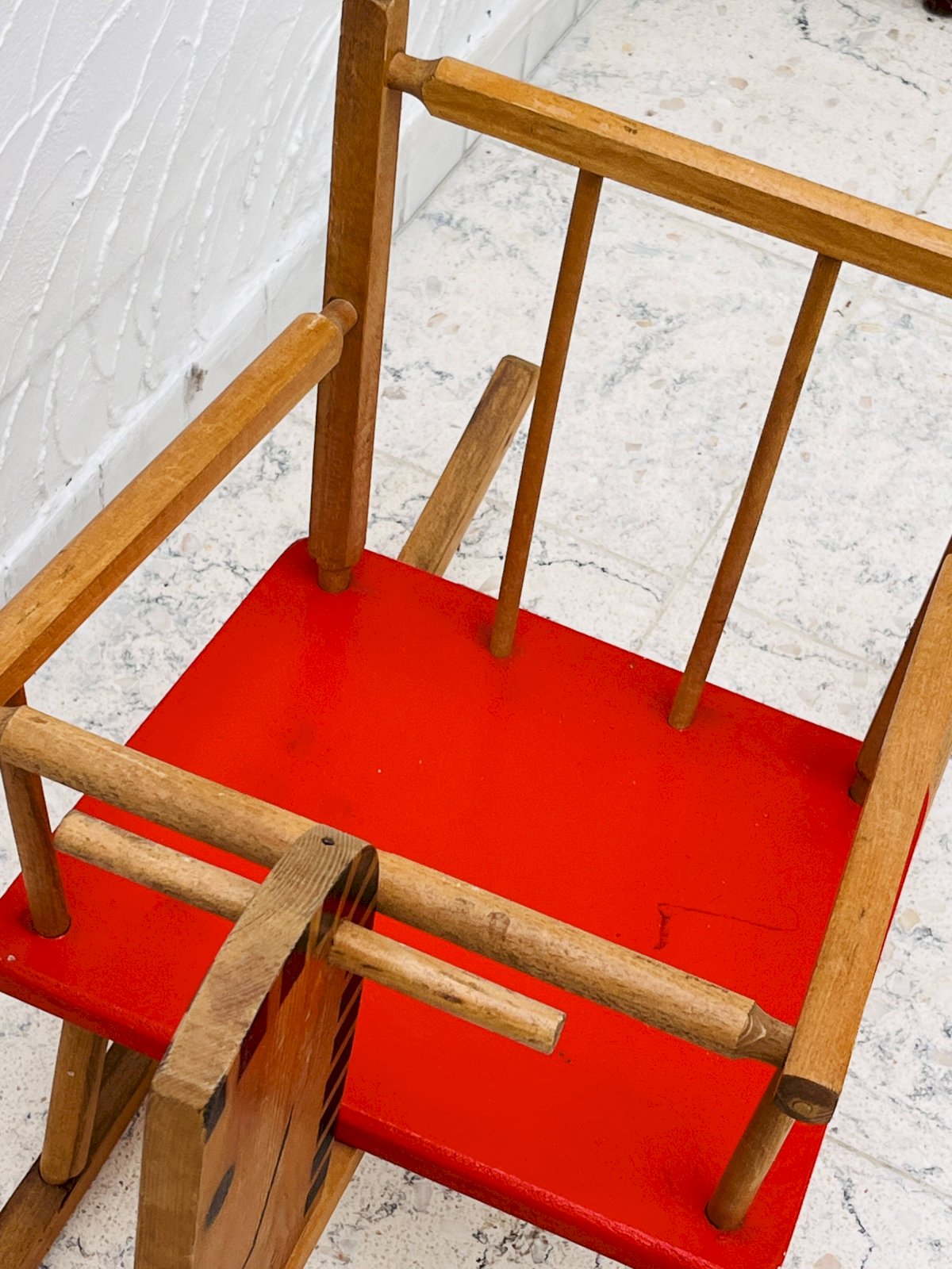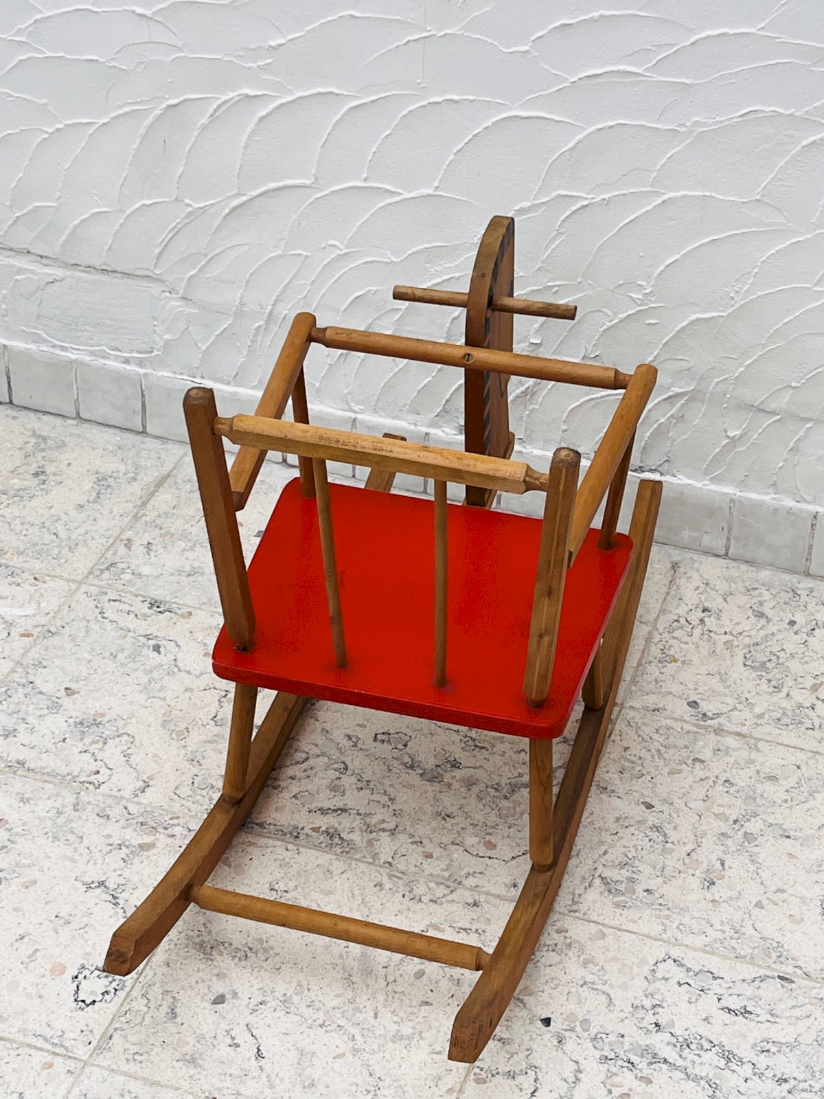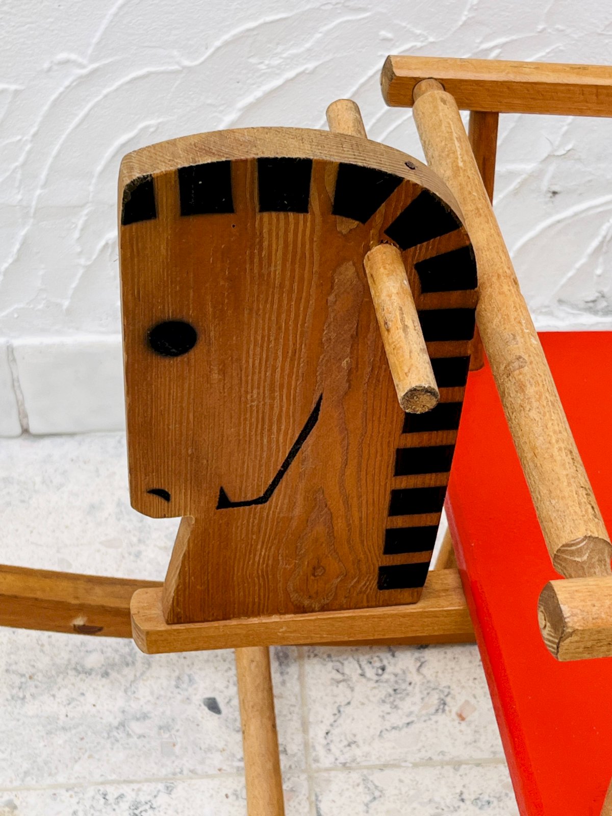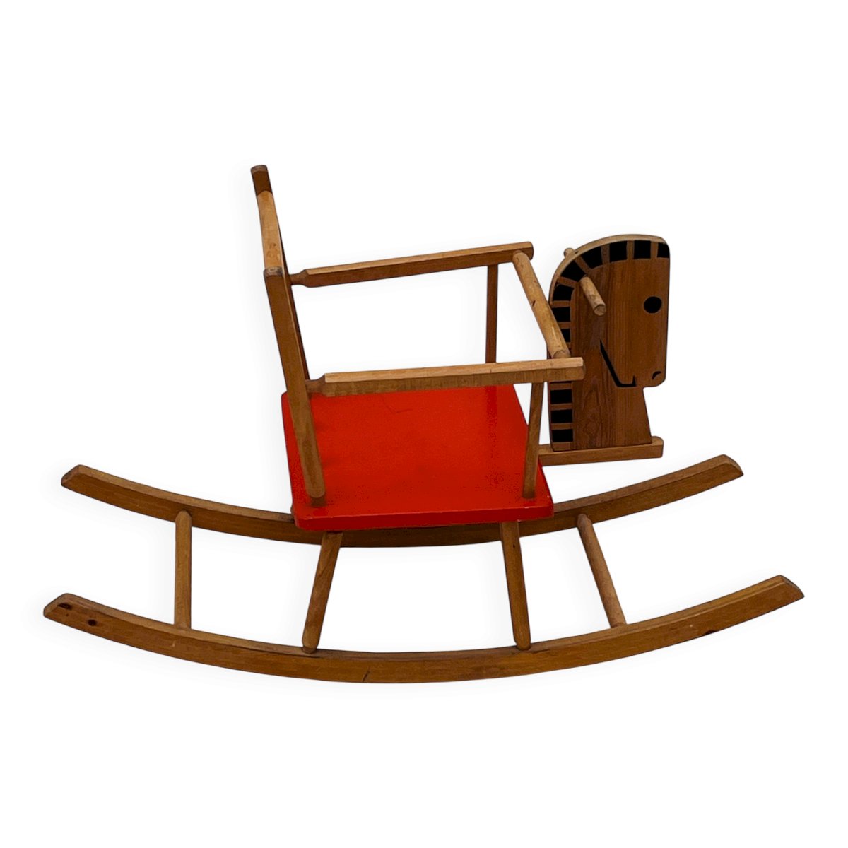 Fabriqué en bois robuste, ce cheval à bascule est doté d'un siège rouge vif qui contraste magnifiquement avec sa finition marron naturelle, ce qui en fait un objet décoratif exceptionnel.Fabriqué en bois durable, garantissant longévité et charme intemporel.Le siège rouge vif ajoute une touche de couleur, rehaussant son charme vintage.Idéal pour apporter une touche de fantaisie à une chambre d'enfant ou comme pièce décorative unique dans un salon.Invitez un morceau du passé chez vous avec ce cheval à bascule enchanteur et laissez-le devenir un élément précieux de votre décoration.Dimensions: 85 X 32 X H 50 cm.