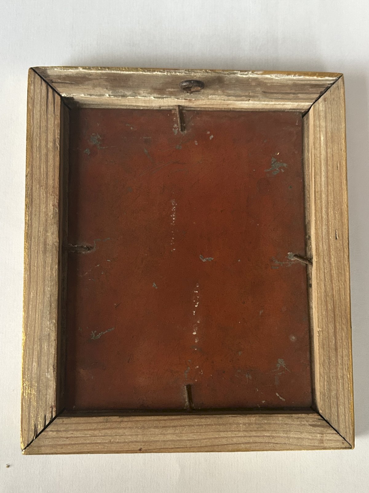 Huile sur plaque de cuivre « chez le medecin » cadre et huile en bon etat 17cm sur 13cm. Provenance familiale