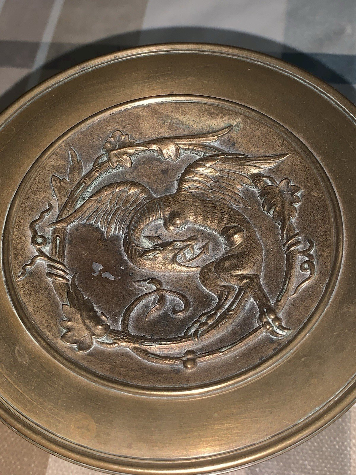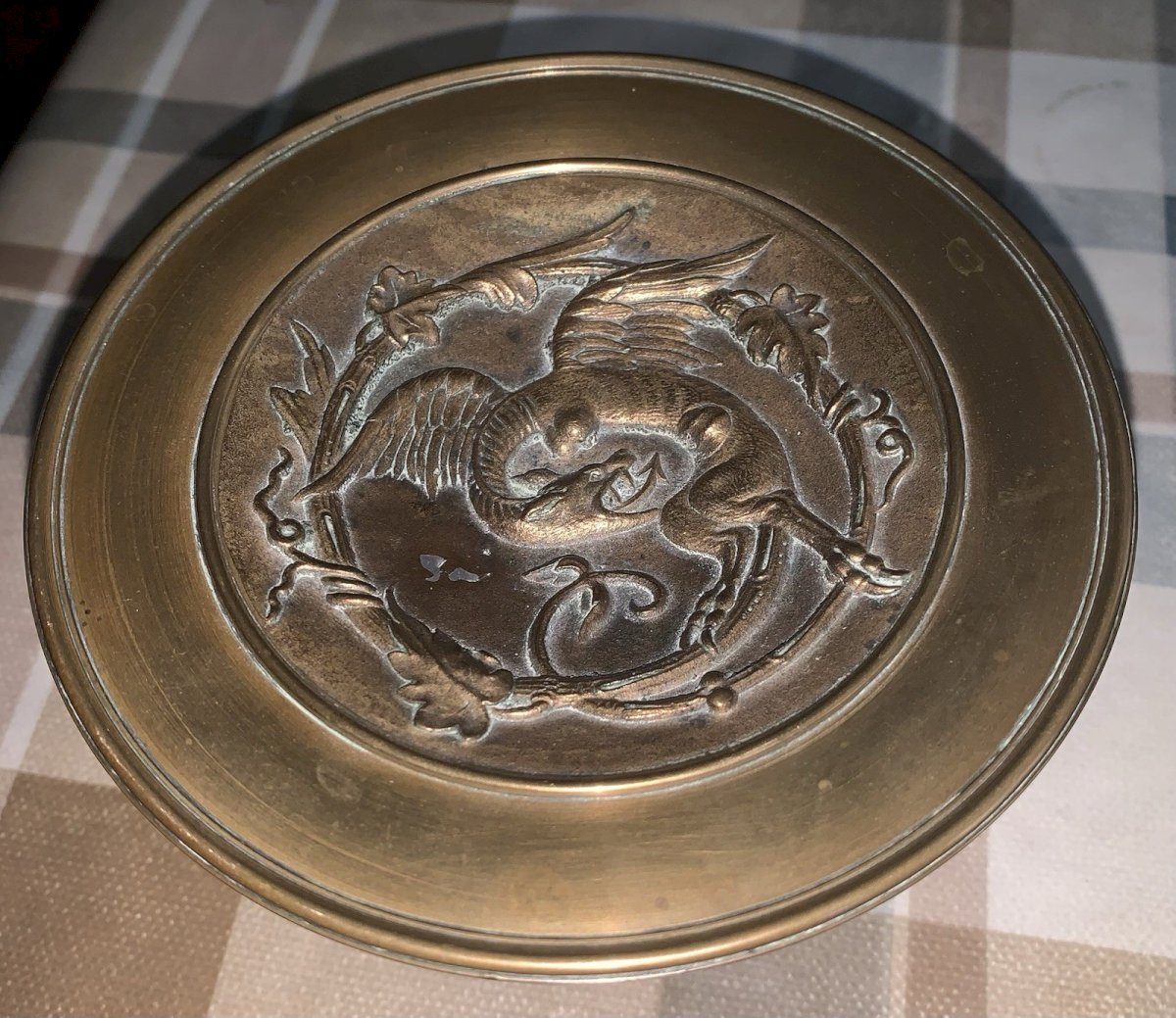 Coupe sur piédouche Bronze Décor au dragon Chine ou Indochine Fin XIXe début 1900's Hauteur:8,5cm Diamètre:13cm Authenticité:Original Type:Objet de vitrine, Décoratif Origine:Asie Sous-type:coupe Matière:Bronze Style:indochine