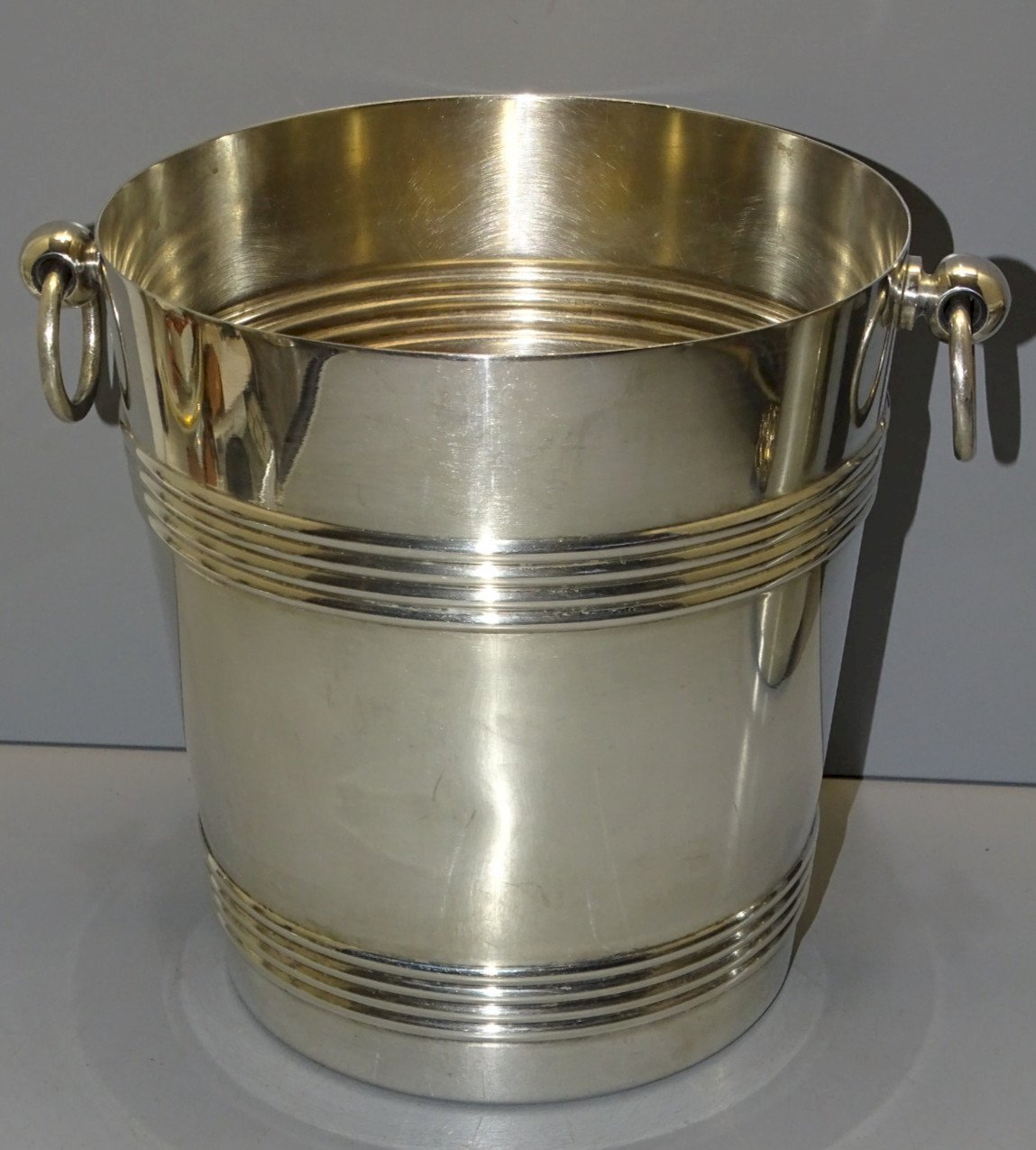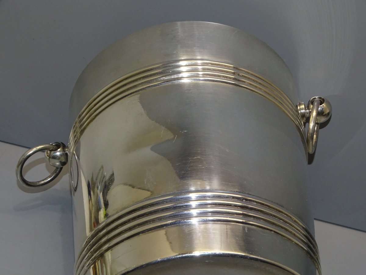 Joli seau à Champagne modèle Biarritz    métal argenté Christofle - ( voir photos ) - jus de trouvailles,  sorti de grenier -1 petit choc sur le centre et avec micros rayures d'usage - piqures & usures argenture au fond intérieur - à finir de nettoyer ( photos )  -  Réf.42141025/32  -  Longueur 24,3 cm - Hauteur 20,7 cm - Diamètre 19,1 cm - Poids 1,535 kg  -   EXPEDITION en Mondial Relay OU Colissimo possible sur demande   EMBALLAGE GARANTI très protecteur  MERCI de BIEN REGARDER TOUTES les PHOTOS car ELLES FONT PARTIE INTEGRANTE de la DESCRIPTION et PERMETTENT de VOIR l'OBJET AU MIEUX - État:Occasion: Objet ayant été utilisé. Objet présentant quelques marques d'usure superficielle, ...Occasion: Objet ayant été utilisé. Objet présentant quelques marques d'usure superficielle, entièrement opérationnel et fonctionnant correctement. Il peut s'agir d'un modèle de démonstration ou d'un objet retourné en magasin après une courte période d'utilisation. les éventuelles imperfections. Couleur:Argenté Marque:CHRISTOFLE Style:Art déco