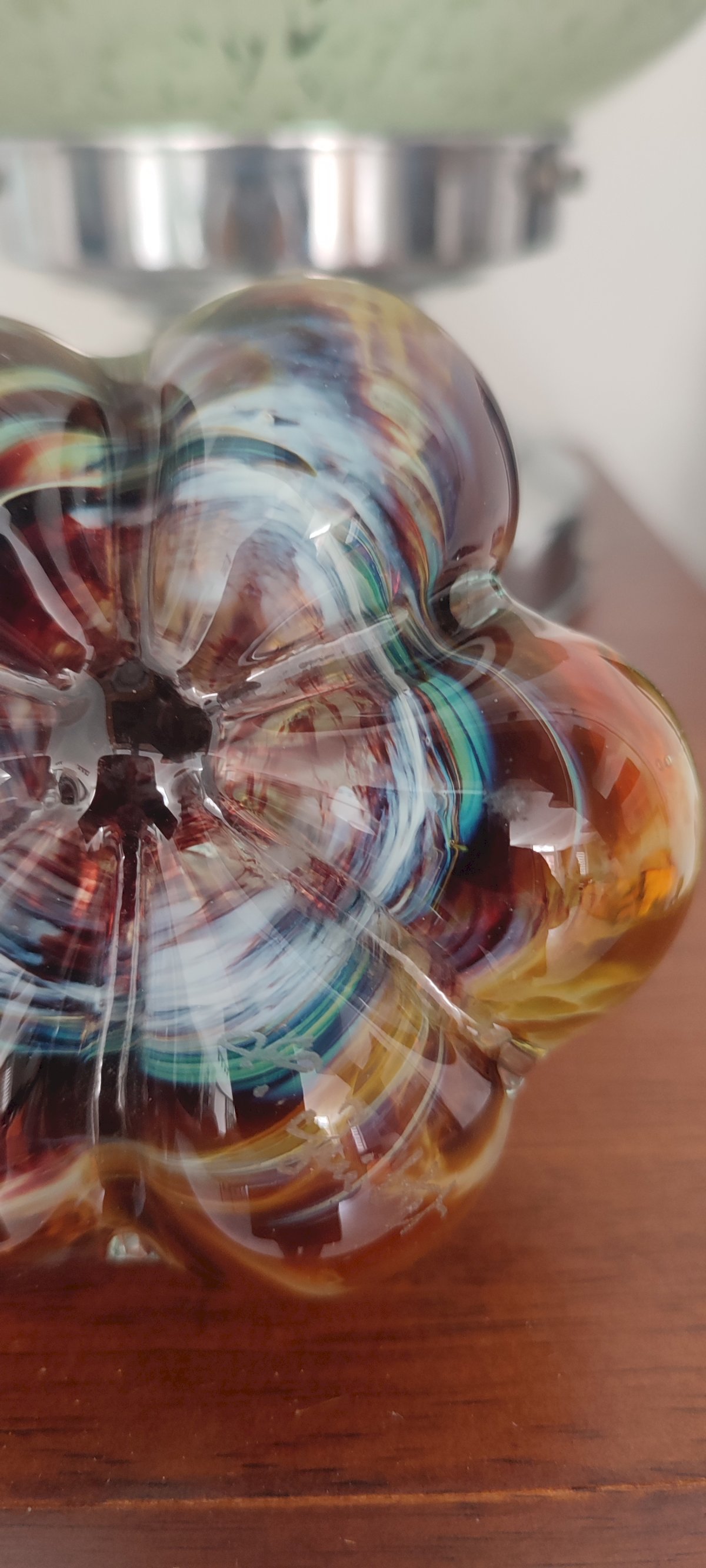 Style : Une pièce aux couleurs d'automne (ambré, bordeaux) avec une tige torsadée à chaud. Création contemporaine , fait main en France.