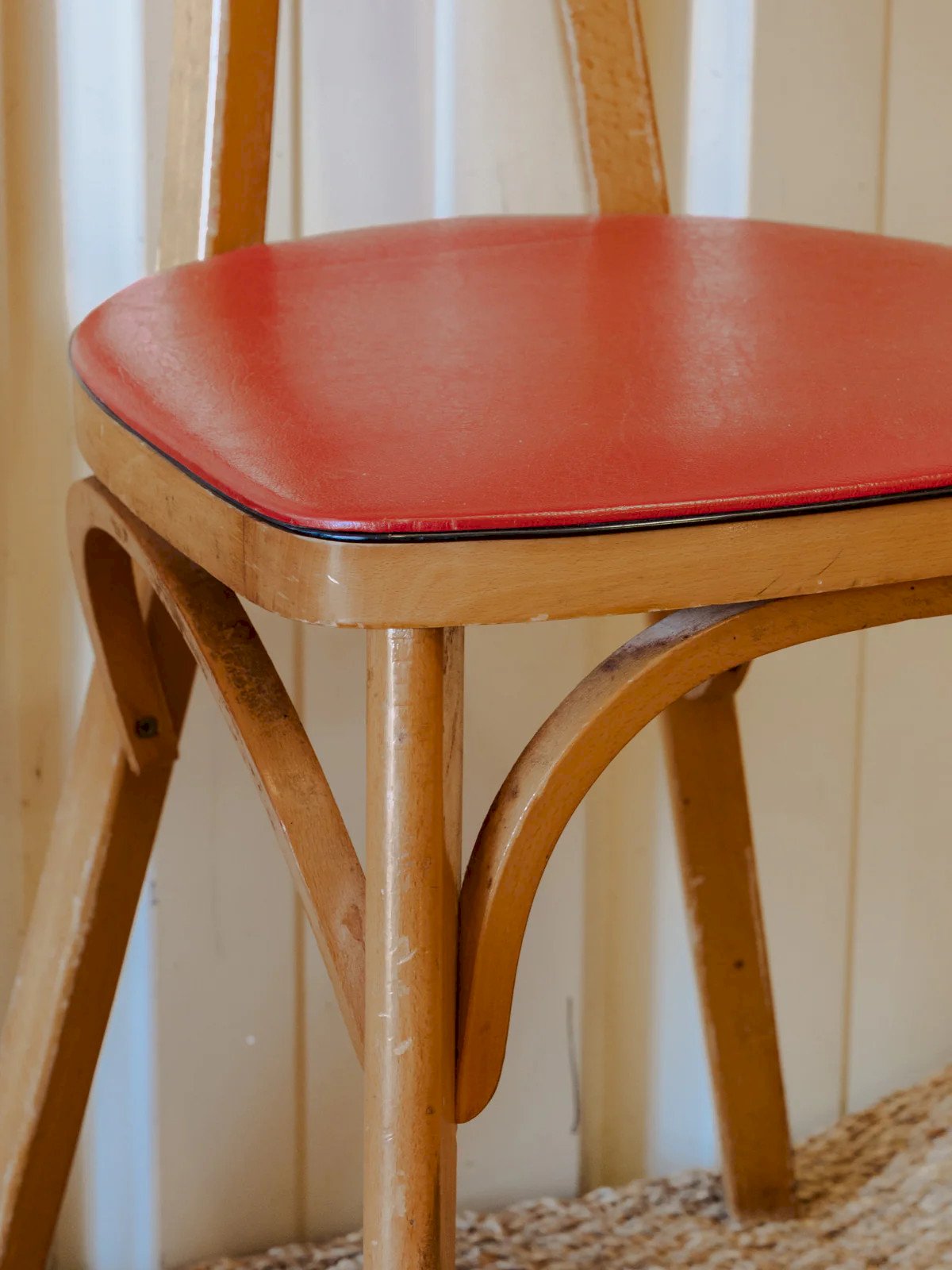 Claude, la chaise bistro en bois et simili cuir rouge N°985