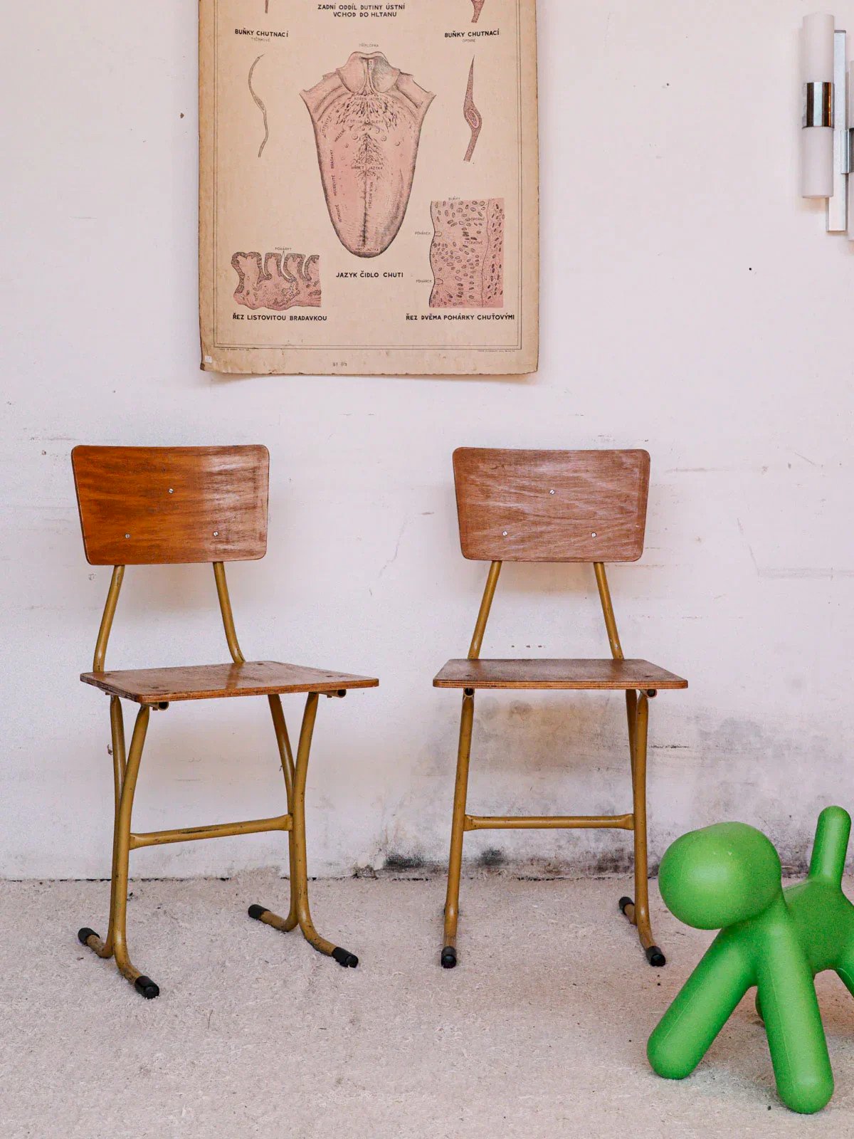 Adoptez cette chaise d'écolier des années 60 en bois et métal, au design sobre et fonctionnel qui s'intègre facilement à un bureau contemporain ou à une table d'appoint. Sa structure compacte et son assise à hauteur standard offrent une assise stable et confortable, tandis que les pieds munis de patins en caoutchouc protègent les sols. La patine du bois et les marques d'usage apportent une touche vintage chaleureuse. Légères traces du temps présentes. Largeur : 40 cm Hauteur : 81 cm Hauteur d'assise : 45,5 cm Profondeur : 41 cm État:Occasion: Objet ayant été utilisé. Objet présentant quelques marques d'usure superficielle, ...Occasion: Objet ayant été utilisé. Objet présentant quelques marques d'usure superficielle, entièrement opérationnel et fonctionnant correctement. Il peut s'agir d'un modèle de démonstration ou d'un objet retourné en magasin après une courte période d'utilisation. les éventuelles imperfections. Couleur:Multicouleur Hauteur:Métal Largeur:Chaises Marque:Debongout Type:Produit chiné Matériau:Métal Style:Campagne