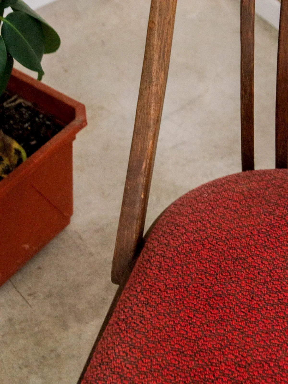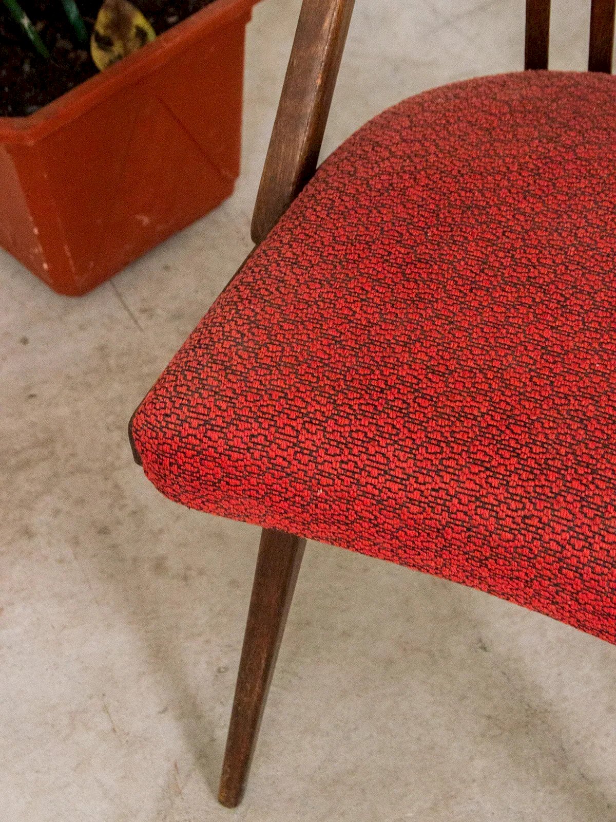 Apportez chaleur et style à votre intérieur avec cette chaise en bois foncé au dossier à six barres. Son assise en tissu rouge orangé offre confort et élégance. Une pièce simple et charmante, parfaite pour compléter votre salle à manger ou un coin repas cosy. Longueur : 44 cm Largeur : 44 cm Hauteur : 79 cm Hauteur d'assise : 48 cm Largeur d'assise : 39 cm Profondeur de l'assise : 41 cm État:Occasion: Objet ayant été utilisé. Objet présentant quelques marques d'usure superficielle, ...Occasion: Objet ayant été utilisé. Objet présentant quelques marques d'usure superficielle, entièrement opérationnel et fonctionnant correctement. Il peut s'agir d'un modèle de démonstration ou d'un objet retourné en magasin après une courte période d'utilisation. les éventuelles imperfections. Couleur:Multicouleur Hauteur:Bois, Tissu Largeur:Chaises Marque:Debongout Type:Produit chiné Matériau:Bois, Tissu Style:Campagne