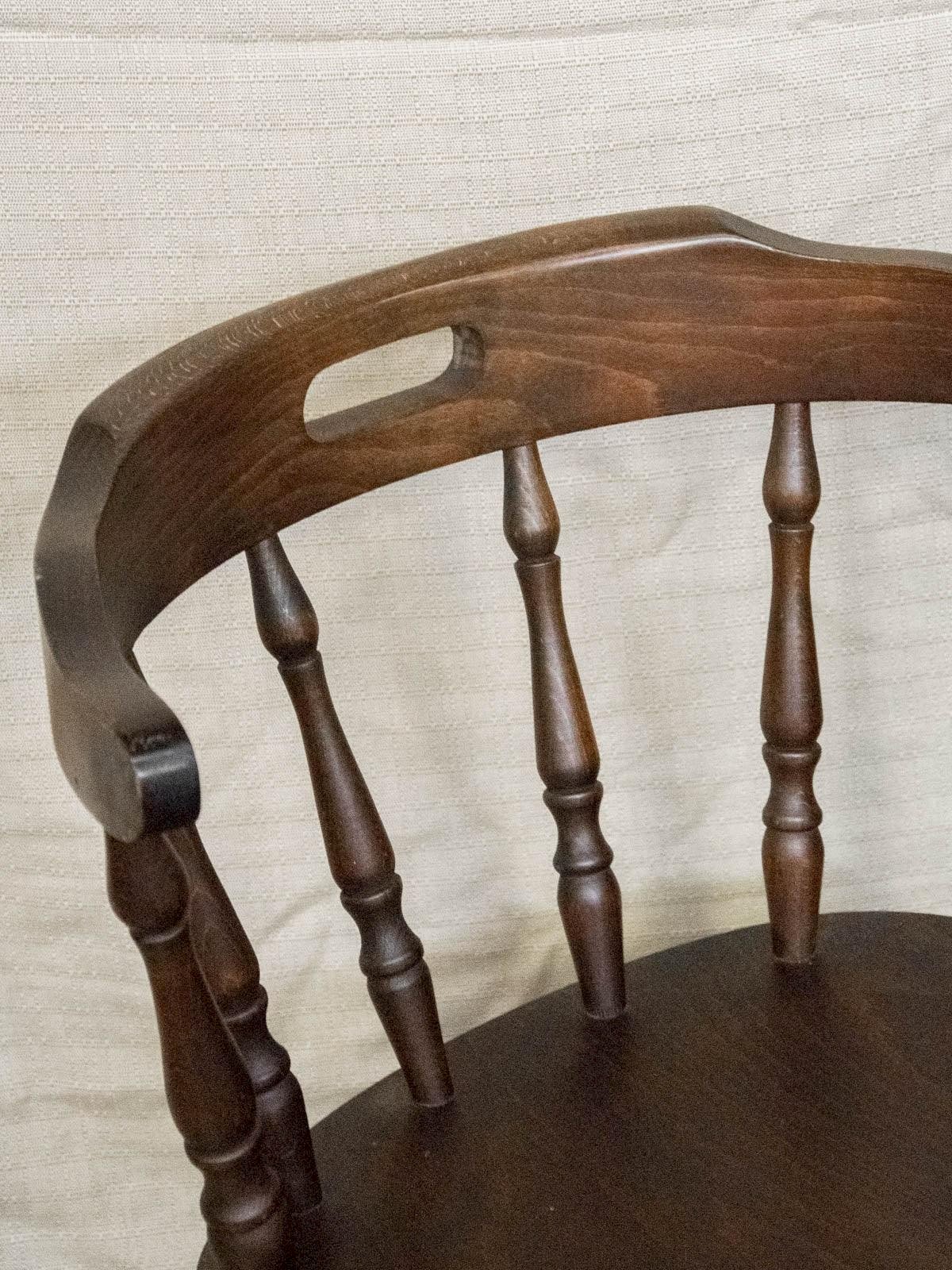 Adoptez cette chaise d'inspiration western en bois foncé sculpté, où le travail du bois apporte une présence chaleureuse et sobre à votre intérieur. Son dossier à barreaux et la poignée intégrée facilitent le déplacement tandis que l'assise incurvée épouse la morphologie pour un confort naturel lors des repas ou des moments de lecture. De proportions équilibrées, elle s'intègre aussi bien autour d'une table que dans un coin lecture, créant une ambiance accueillante et authentique. Quelques traces d'usage à noter. Longueur : 48 cm Largeur : 43 cm Hauteur : 76 cm Hauteur d'assise : 46 cm Profondeur de l'assise : 54 cm Largeur de l'assise : 36,5 cm Hauteur du dossier 33,5 cm État:Occasion: Objet ayant été utilisé. Objet présentant quelques marques d'usure superficielle, ...Occasion: Objet ayant été utilisé. Objet présentant quelques marques d'usure superficielle, entièrement opérationnel et fonctionnant correctement. Il peut s'agir d'un modèle de démonstration ou d'un objet retourné en magasin après une courte période d'utilisation. les éventuelles imperfections. Couleur:Multicouleur Hauteur:Bois Largeur:Chaises Marque:Debongout Type:Produit chiné Matériau:Bois Style:Campagne