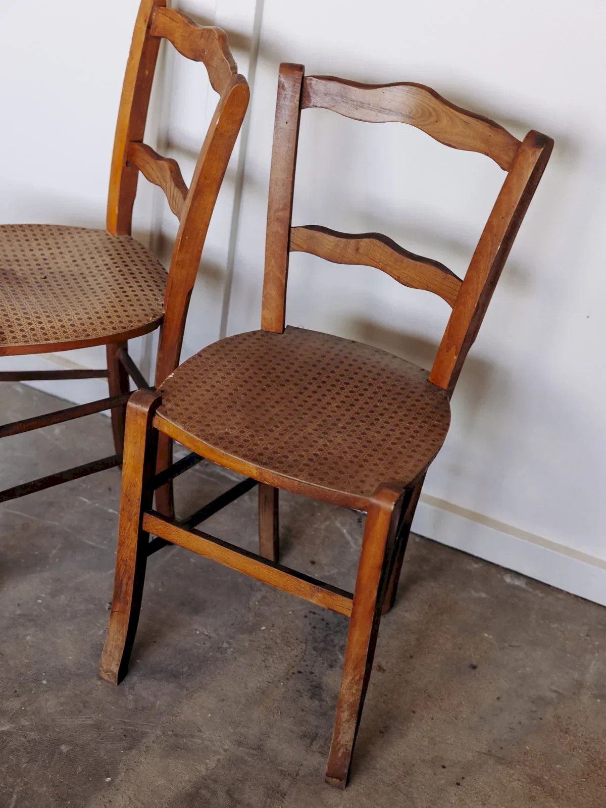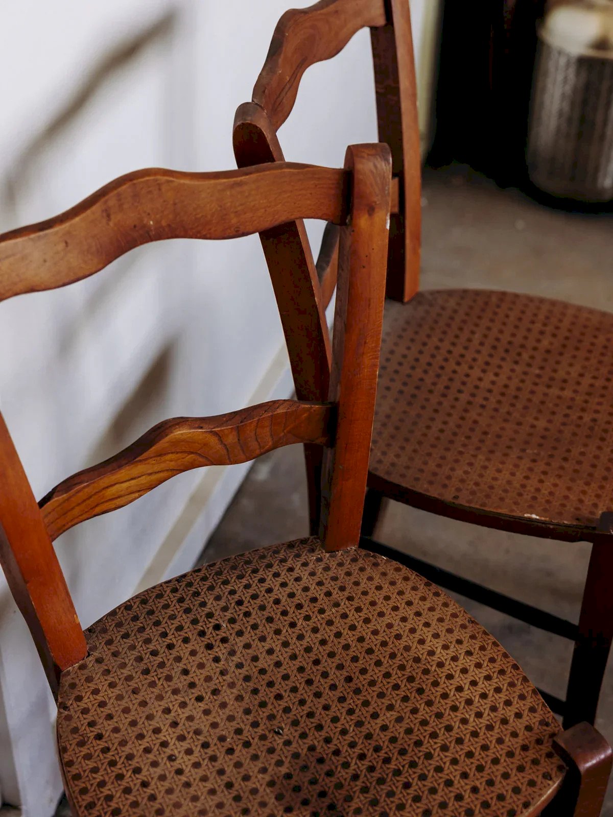 Découvrez cette paire de chaises en bois au charme discret et intemporel. Leur dossier se compose d’une unique barre, pour un style épuré. Les pieds légèrement incurvés leur donnent une belle silhouette. L’assise en bois est ornée de petits motifs ronds gravés. Parfaites autour d’une table ou en chaise d’appoint. Vendues par paries, deux quantités sont disponibles ! Longueur : 38 cm Hauteur : 83 cm Hauteur d'assise : 45 cm Profondeur : 36 cm État:Occasion: Objet ayant été utilisé. Objet présentant quelques marques d'usure superficielle, ...Occasion: Objet ayant été utilisé. Objet présentant quelques marques d'usure superficielle, entièrement opérationnel et fonctionnant correctement. Il peut s'agir d'un modèle de démonstration ou d'un objet retourné en magasin après une courte période d'utilisation. les éventuelles imperfections. Couleur:Multicouleur Hauteur:Bois Largeur:Chaises Marque:Debongout Type:Produit chiné Matériau:Bois Style:Campagne