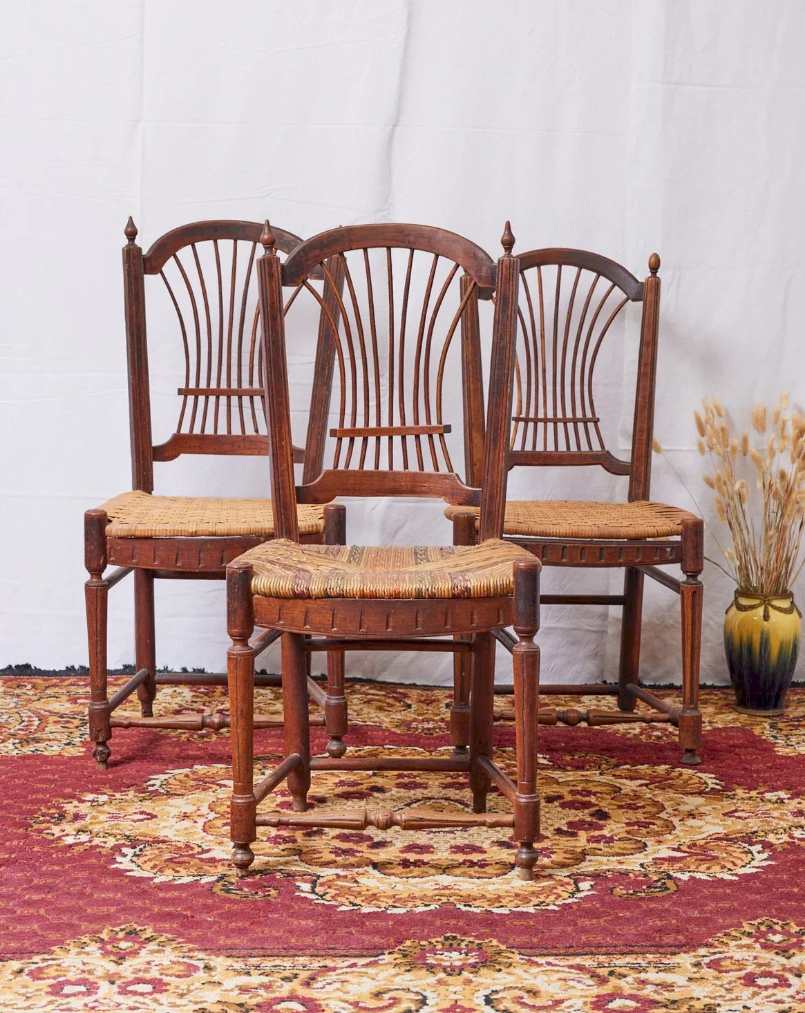 Adoptez ce lot de trois chaises de campagne à assise en paille tressée, où la simplicité des matériaux naturels rencontre une élégance discrète. Leur structure en bois aux lignes sobres s'intègre harmonieusement dans une cuisine, une salle à manger ou une véranda, apportant une ambiance chaleureuse et authentique. Conçues pour un usage quotidien, elles offrent une assise confortable et se déplacent aisément pour s'adapter aux moments conviviaux. Idéales pour créer un coin repas convivial au charme rustique. Longueur : 44 cm Largeur : 38 cm Hauteur : 90 cm Hauteur d'assise : 44 cm État:Occasion: Objet ayant été utilisé. Objet présentant quelques marques d'usure superficielle, ...Occasion: Objet ayant été utilisé. Objet présentant quelques marques d'usure superficielle, entièrement opérationnel et fonctionnant correctement. Il peut s'agir d'un modèle de démonstration ou d'un objet retourné en magasin après une courte période d'utilisation. les éventuelles imperfections. Couleur:Multicouleur Hauteur:Bois, Paille Largeur:Chaises Marque:Debongout Type:Produit chiné Matériau:Bois, Paille Style:Campagne