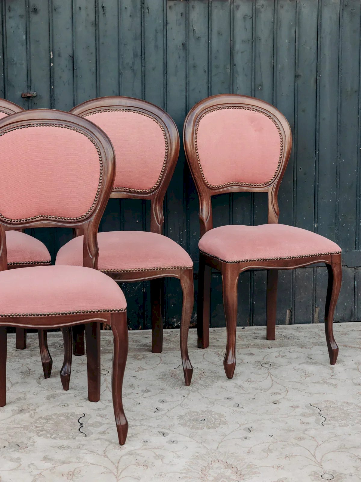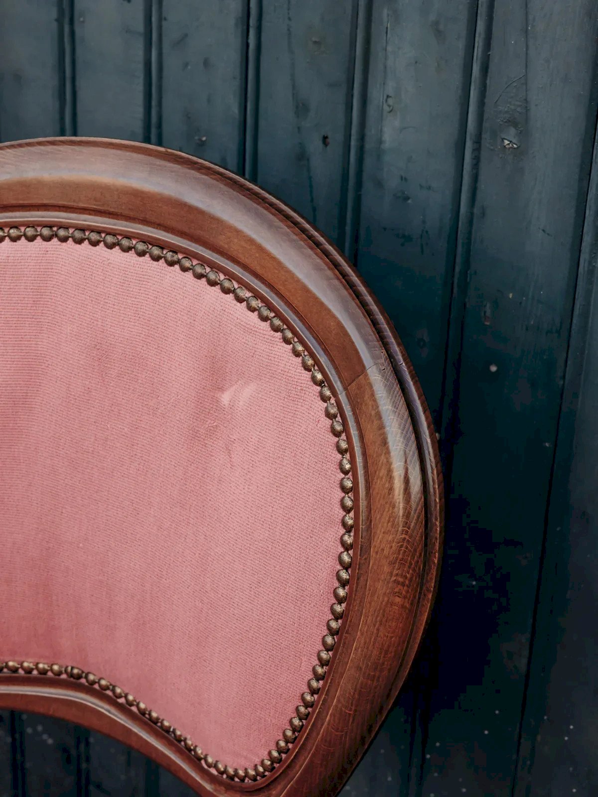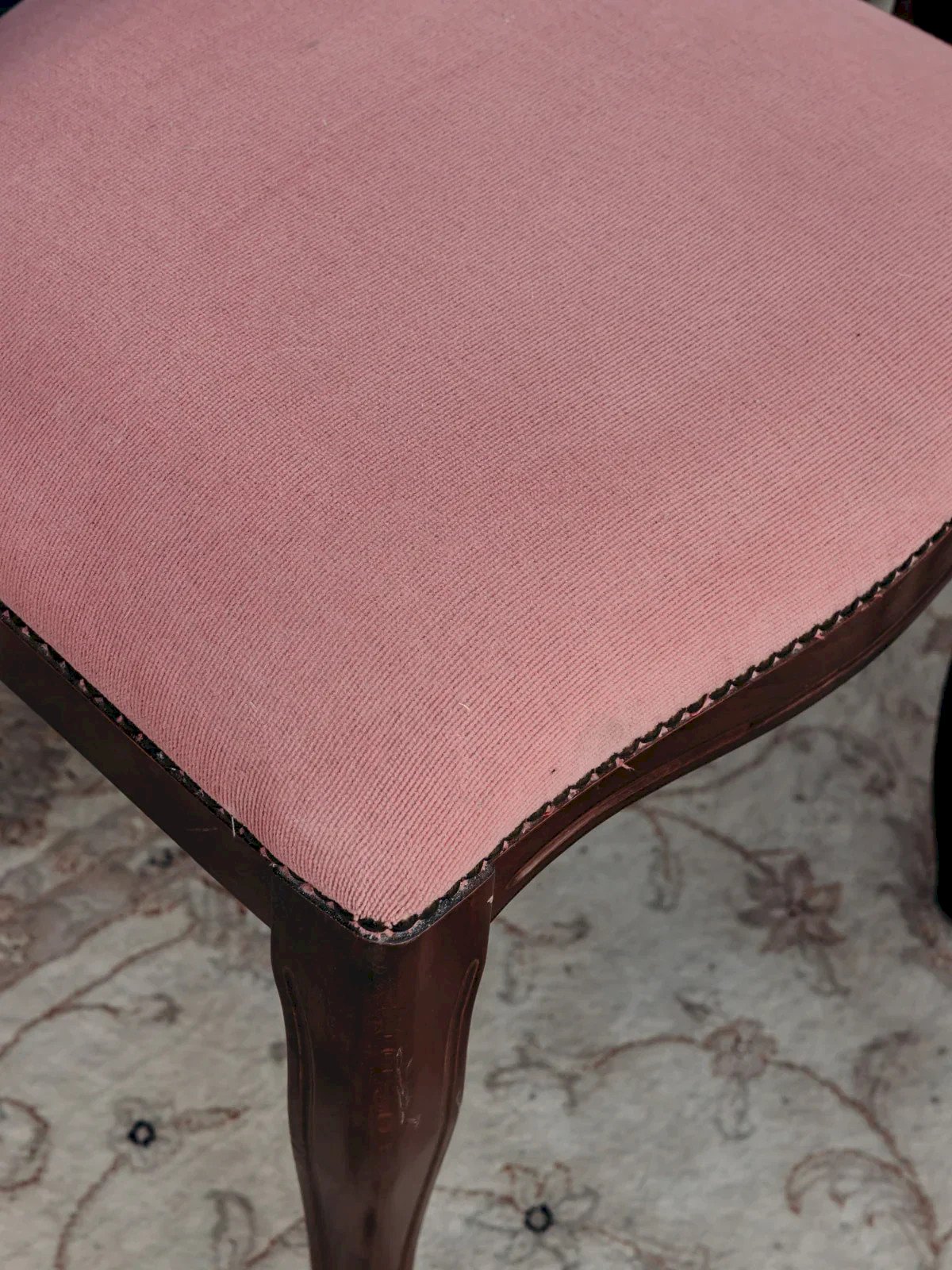 Adoptez cette chaise en tissu rose au dossier et à l'assise arrondis, conçue pour apporter une touche douce et raffinée à votre intérieur. Son dossier haut enveloppant assure un soutien confortable tandis que l'assise généreuse invite à la détente, idéale autour d'une table, dans un coin lecture ou au bureau. Les pieds travaillés apportent une silhouette structurée et un détail artisanal qui sublime le style. Sa proportion compacte facilite son intégration dans les espaces contemporains. Longueur : 47 cm Largeur : 44 cm Hauteur : 98 cm Hauteur d'assise : 50 cm État:Occasion: Objet ayant été utilisé. Objet présentant quelques marques d'usure superficielle, ...Occasion: Objet ayant été utilisé. Objet présentant quelques marques d'usure superficielle, entièrement opérationnel et fonctionnant correctement. Il peut s'agir d'un modèle de démonstration ou d'un objet retourné en magasin après une courte période d'utilisation. les éventuelles imperfections. Couleur:Multicouleur Hauteur:Tissu, Bois Largeur:Chaises Marque:Debongout Type:Produit chiné Matériau:Tissu, Bois Style:Campagne
