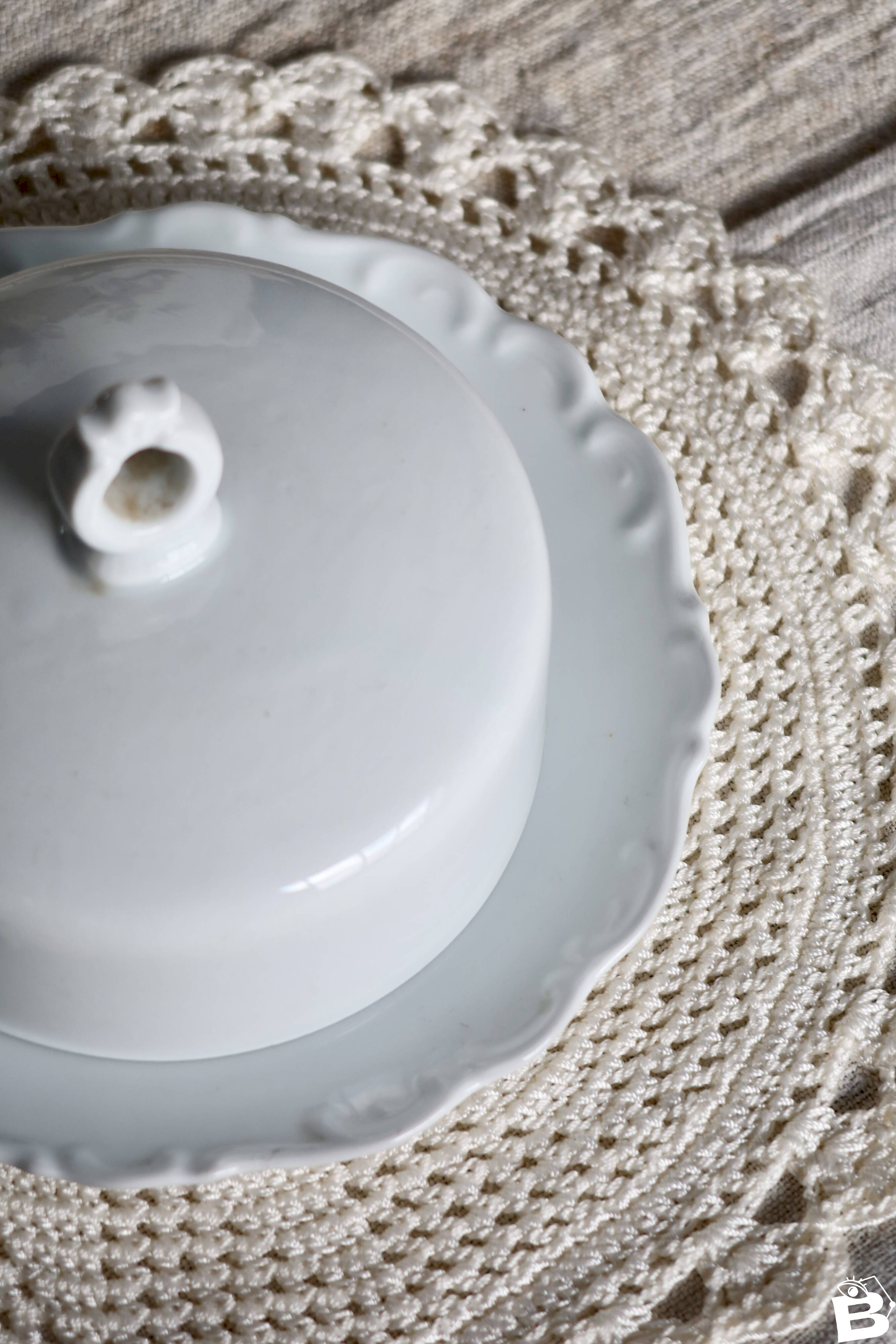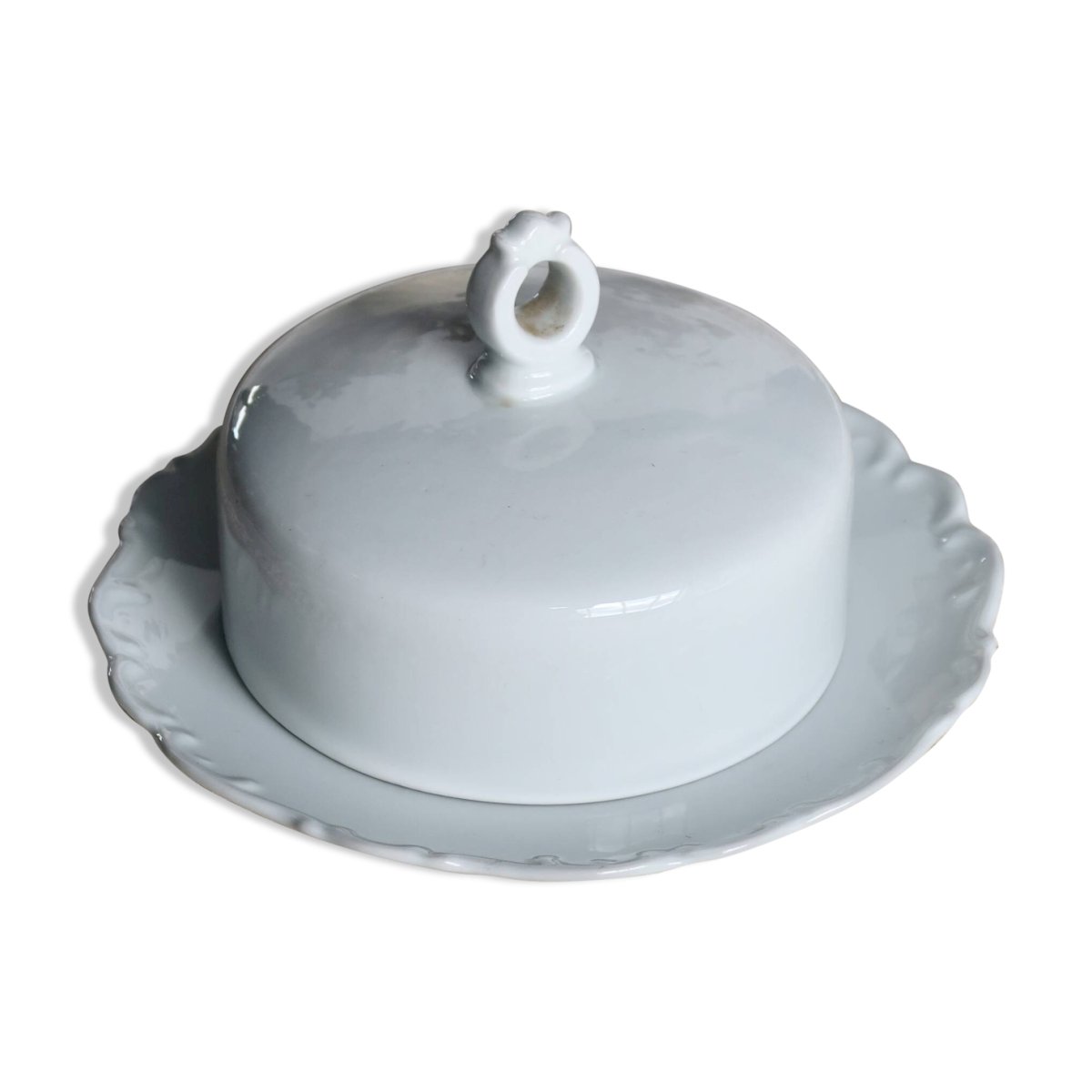Cloche à beurre vintage en porcelaine blanche Céramique