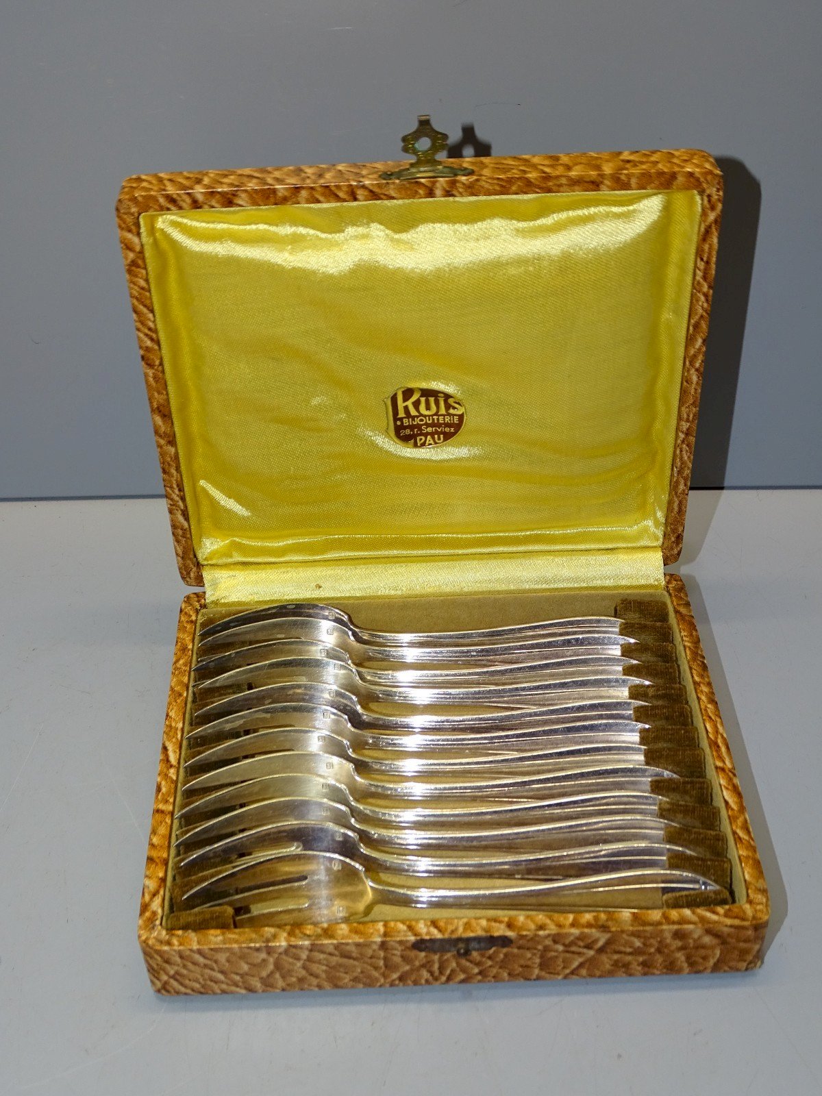 Ancien coffret 12 petites fourchettes à dessert en Métal argenté - 1 pionçon couverts DIXI et 1 poinçon 18g - petites usures de frottement sur le coffret - les fourchettes sont à nettoyer, jus de grenier  ( voir photos ) - En bel état d'usage - Réf: 1V251219/4  - Coffret 16,2 x 13,6 cm Hauteur 4,2 cm - Longueur Fourchettes 14,4 cm - Poids 528 g -   Pour toutes questions :  EXPEDITION POSSIBLE EN MONDIAL RELAY ou COLISSIMO sur demande TRES BON EMBALLAGE GARANTI       MERCI de BIEN REGARDER TOUTES les PHOTOS car ELLES FONT PARTIE INTEGRANTE de la DESCRIPTION et PERMETTENT de VOIR l'OBJET AU MIEUX  avec SES PETITS DEFAUTS EVENTUELS - État:Occasion: Objet ayant été utilisé. Consulter la description du vendeur pour avoir plus de détails ...Occasion: Objet ayant été utilisé. les éventuelles imperfections.