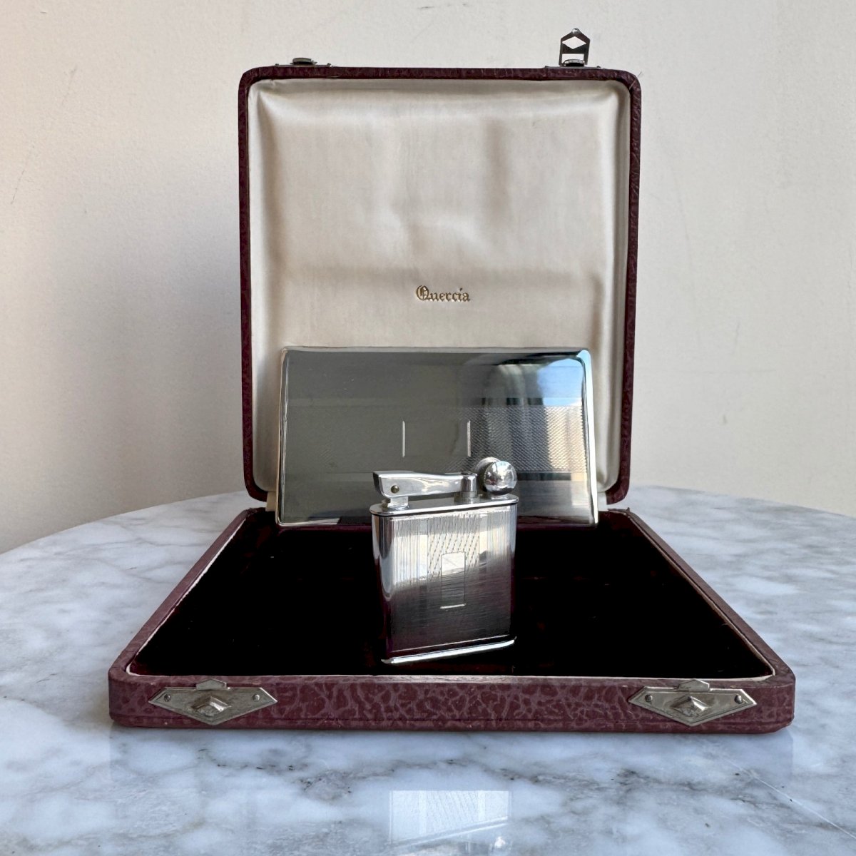 Coffret Quercia boite à cigarettes briquet Flamidor métal argenté 1930 M3901