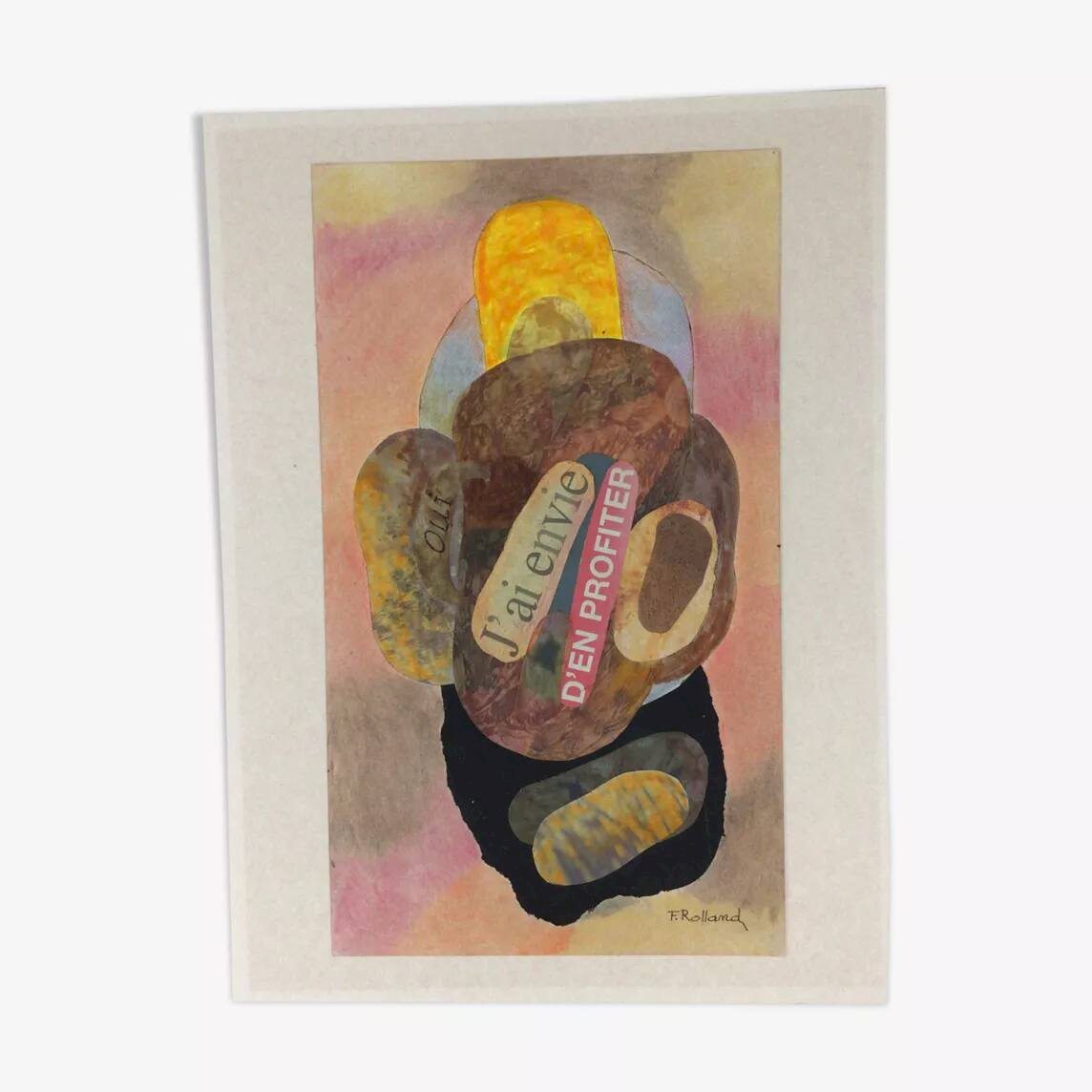 Collage sur carton par fernand rolland (1920-2004), château du tremblay.Composition abstraite signée.Dimensions collage 20*35 cm.F.Rolland a vécu au château du tremblay dans l’yonne pendant 50 ans.Écrivain, poète et peintre.Une partie de ses œuvres est exposée au centre régional d’art contemporain du tremblay.Emballage soigné et livraison rapide.