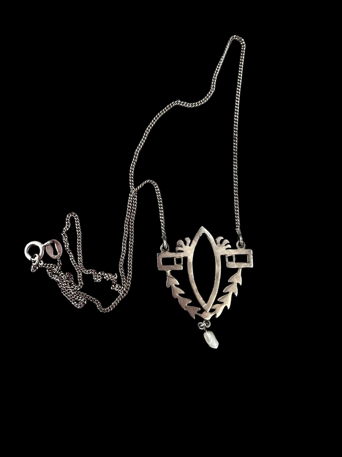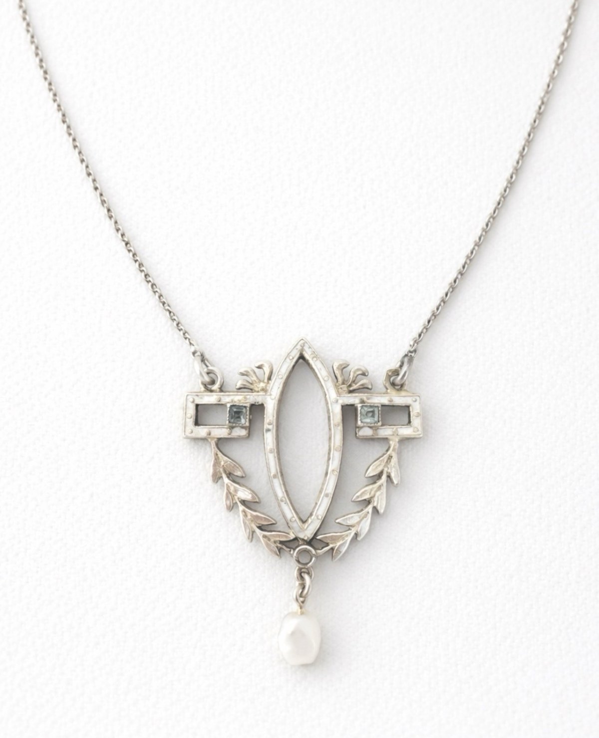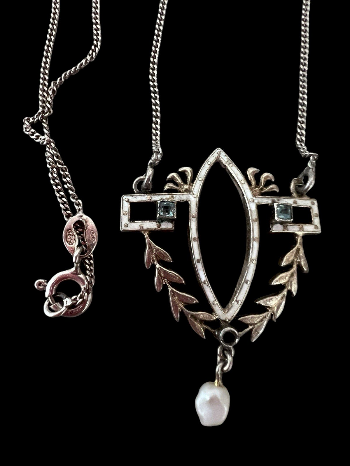Collier Art Nouveau Argent Vermeil Émail Perle Ancien Pendentif Rare XIXe s