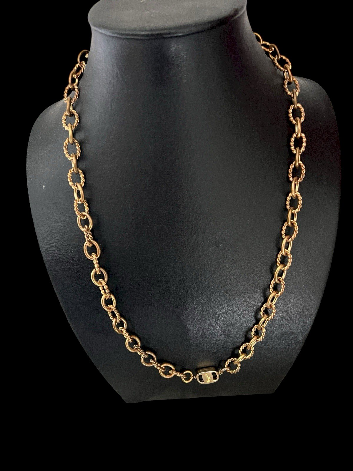 Collier chaîne Salvatore Ferragamo doré signé bijou vintage couture luxe Italie
