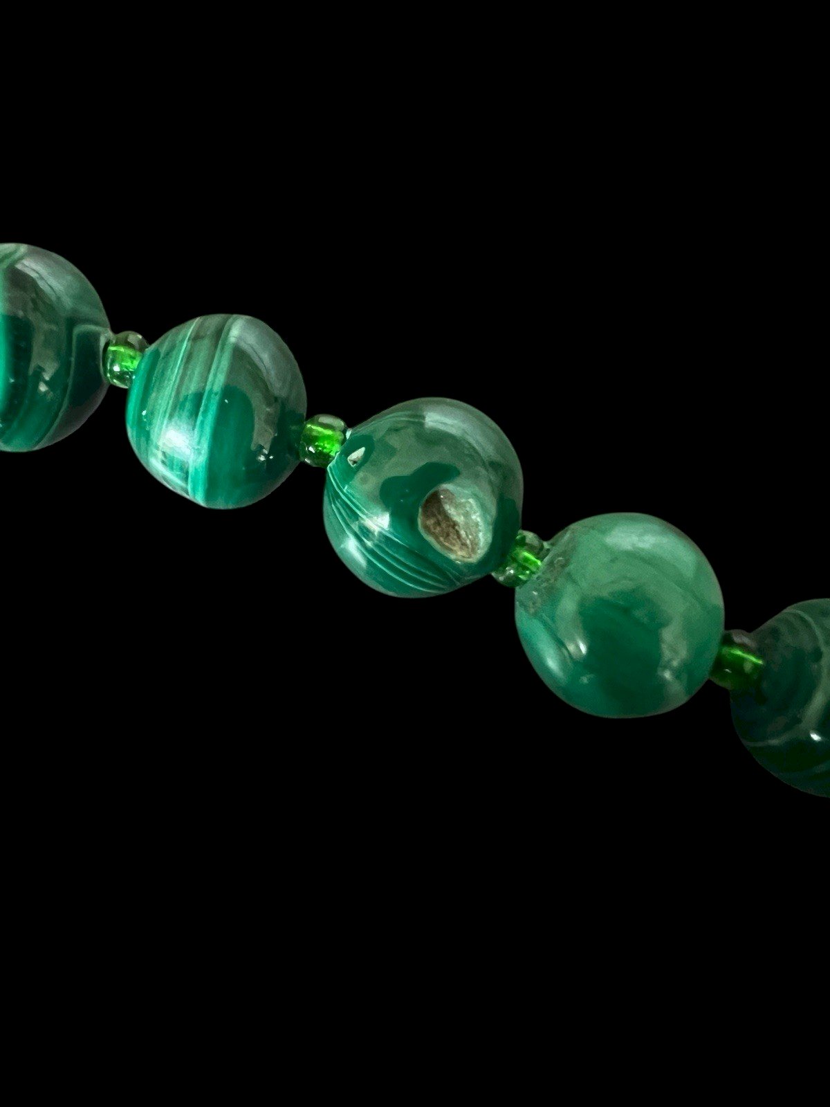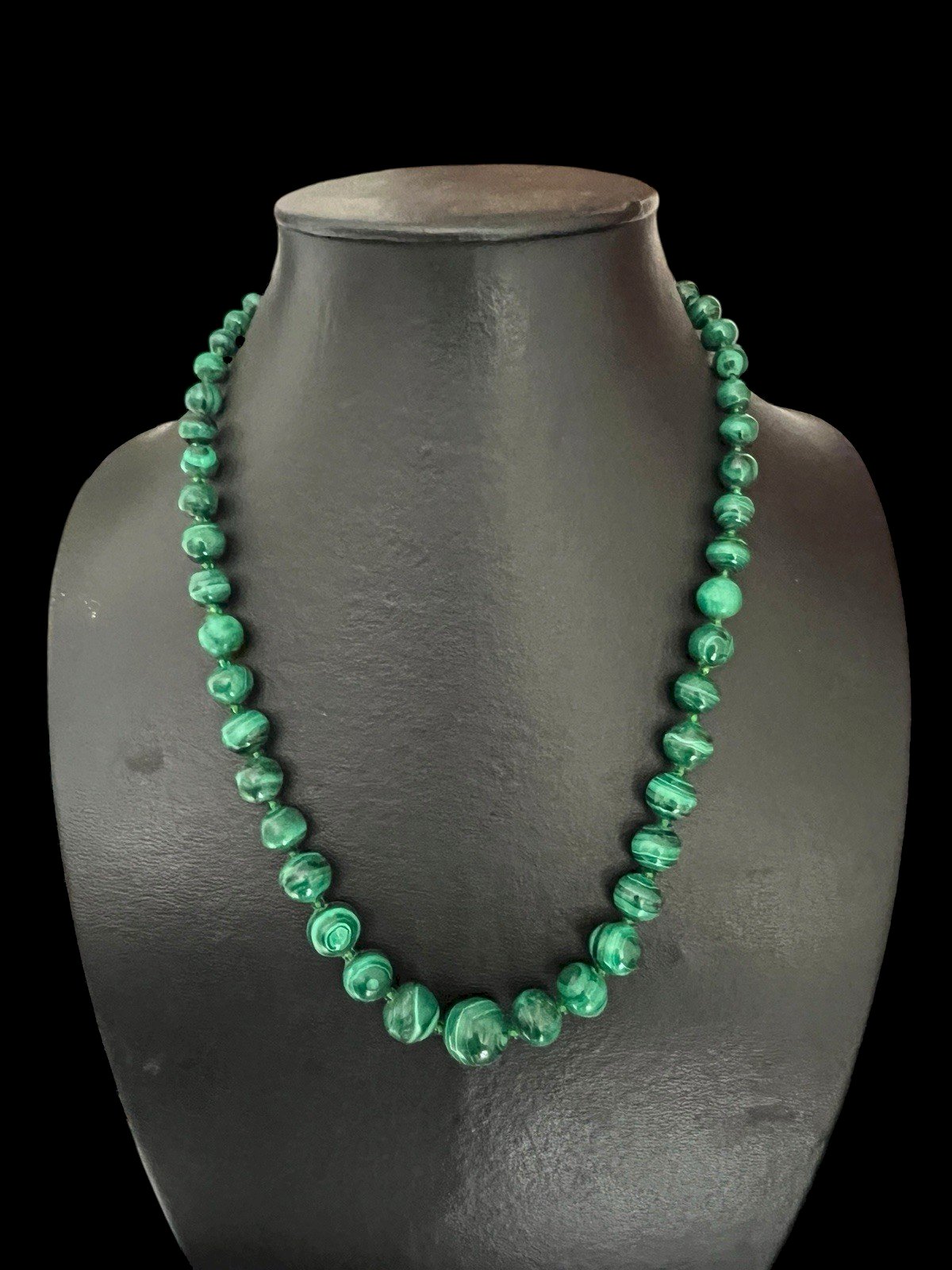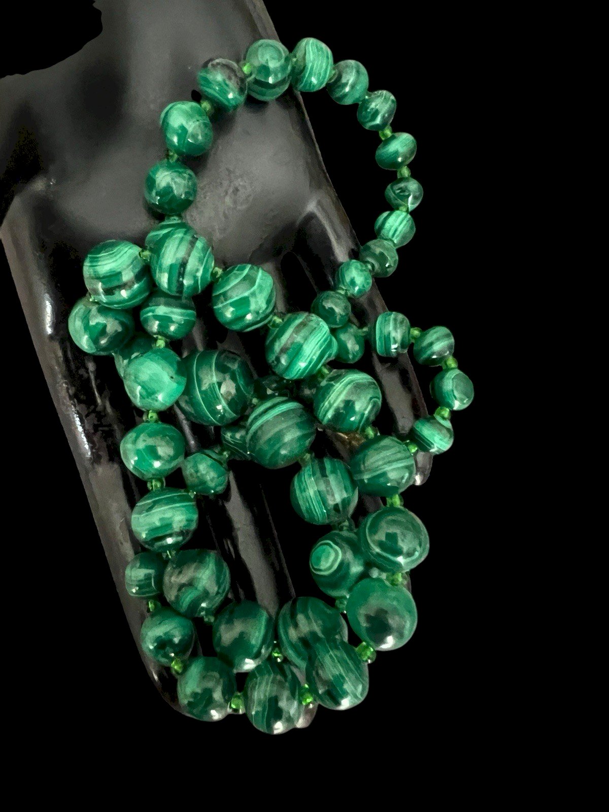 Collier en Dégradé vintage perles Minéral malachite et Perles De Verre Ancien