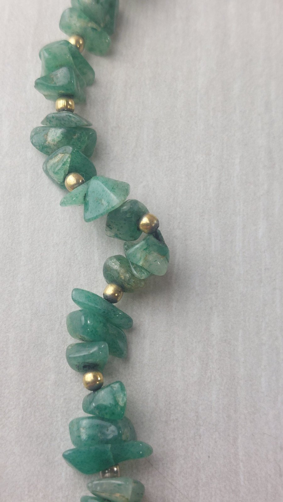 Collier double fantasy vintage doré & petit cabochon vert et pierres vertes