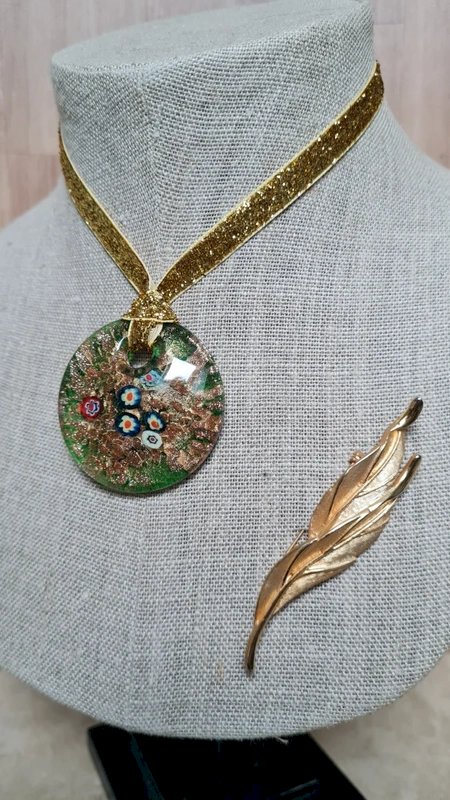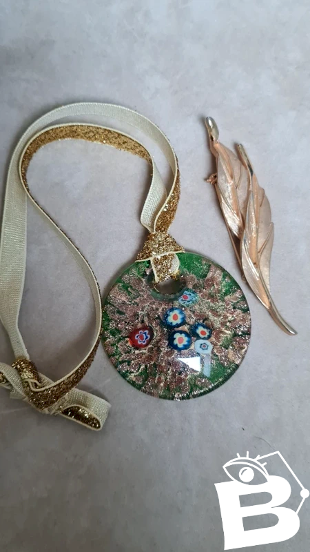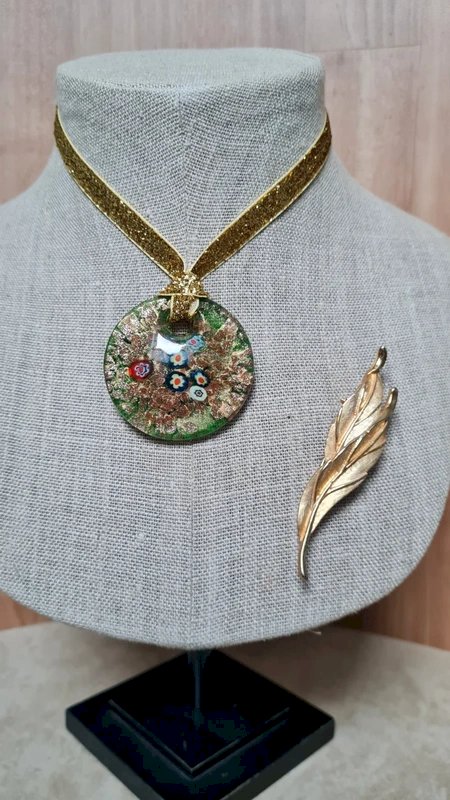 Collier en verre style Murano et broche doré vintage Multicolore/Doré Verre/Métal