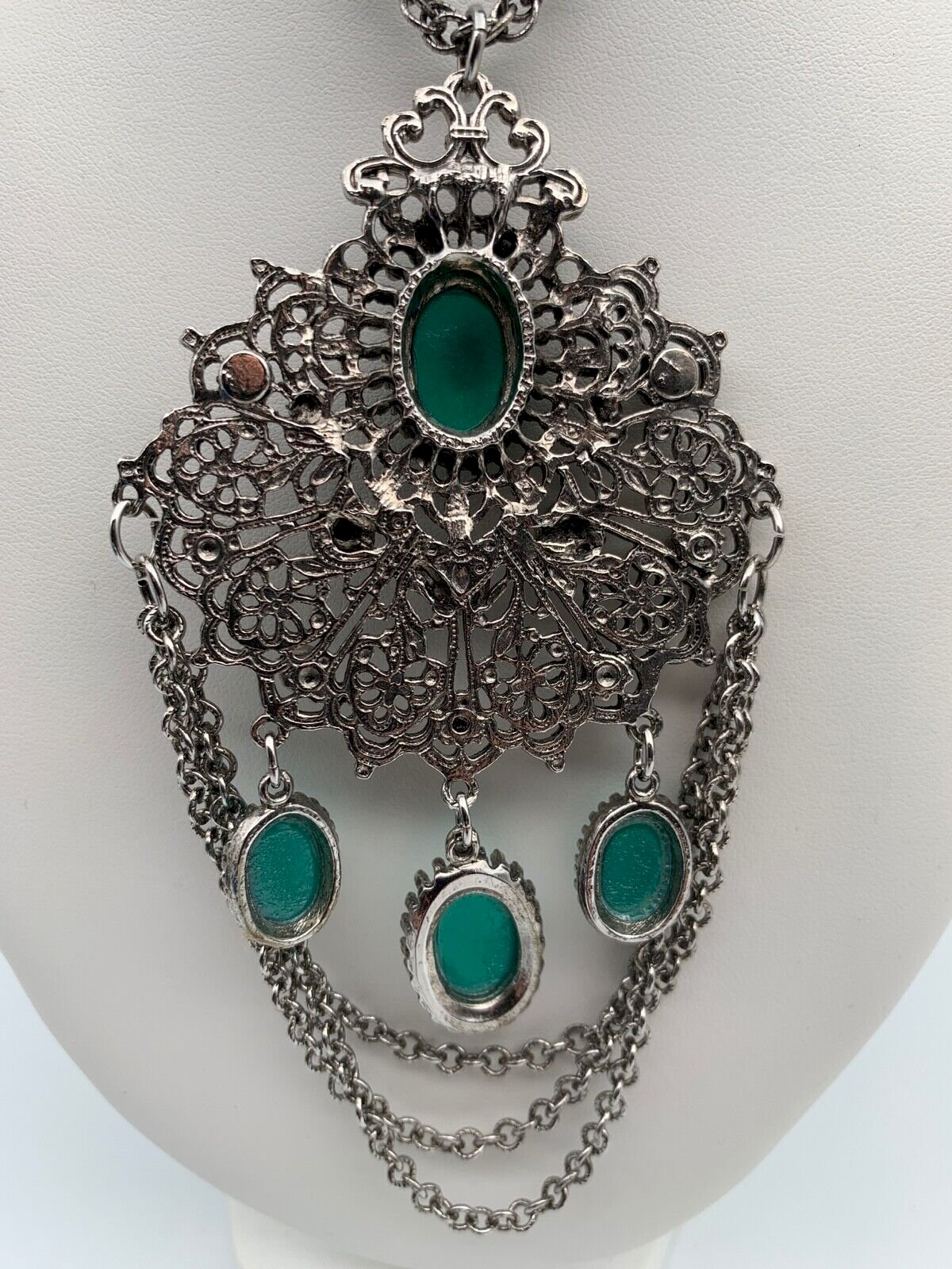 COLLIER FANATAISIE STYLE ORIENTALE ALLIAGE GRIS OXYDES VERTS 66 GRAMMES W553