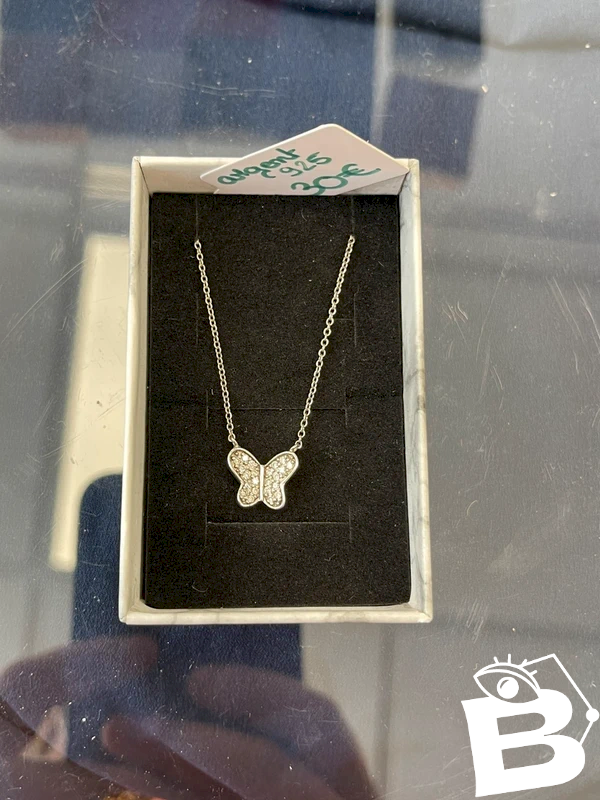COLLIER FANTAISIE ANCIEN PENDENTIF PAPILLON AILES BLEUES 30 GRAMMES W1301