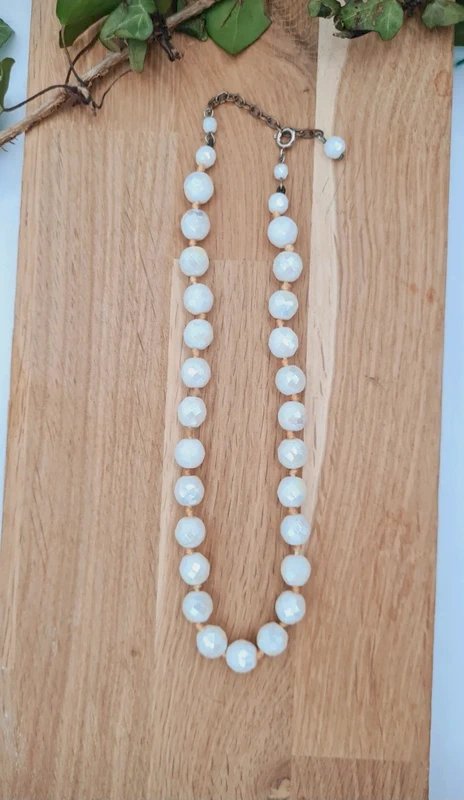 au dessus de 25€, merci de choisir comme transporteur si possible profitez-en pour acheter en lot : 5 articles - 10% 10 articles - 20% - 20 articles -30% bien regarder les photos pour voir les imperfections Le métal à des traces d'oxydation collier en verre multi-facettes blanc irisé dimensions largeur : 1 cm tour de cou : 45,5 cm#collier#cadeau#chic#collection#vintage#bijou#colliervintage#rasdecou...