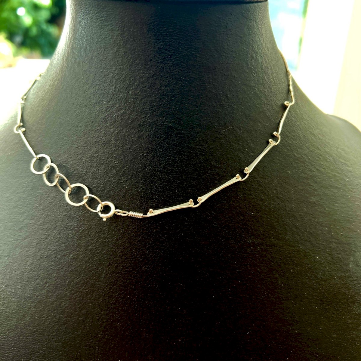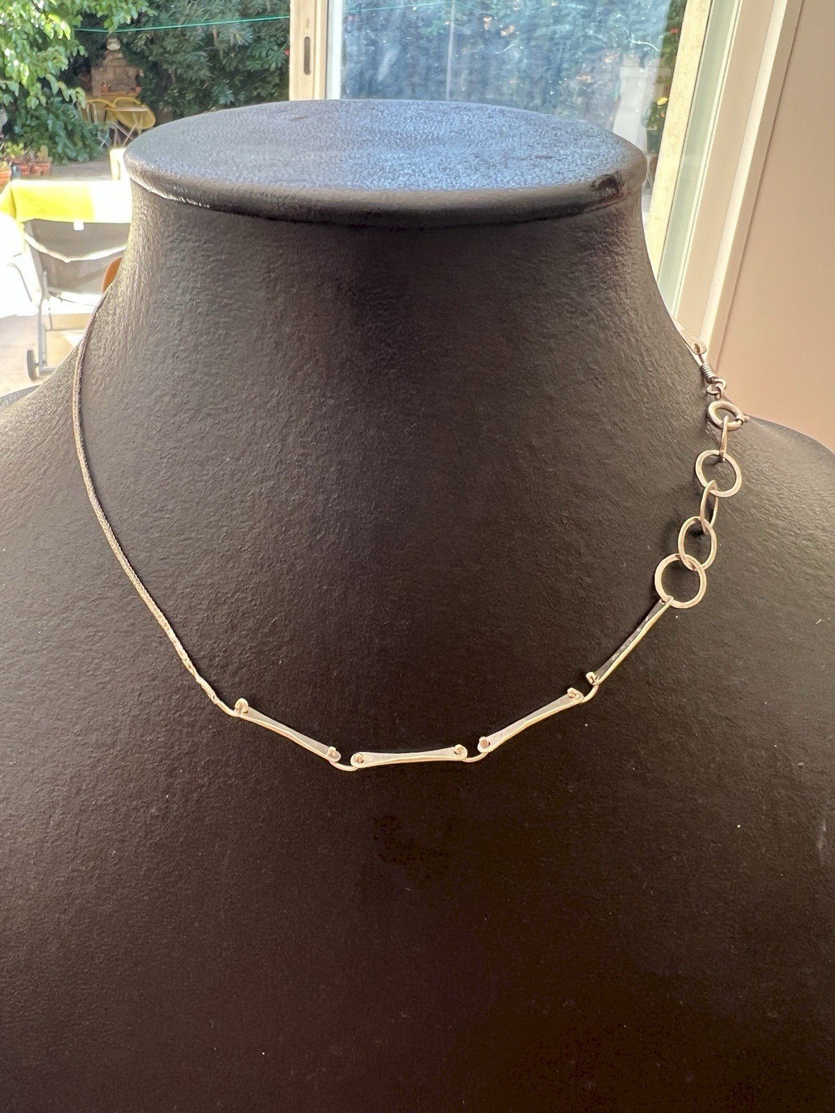 Collier vintage design argent massif créateur « Gusils» vers 1970 Chaine Corde