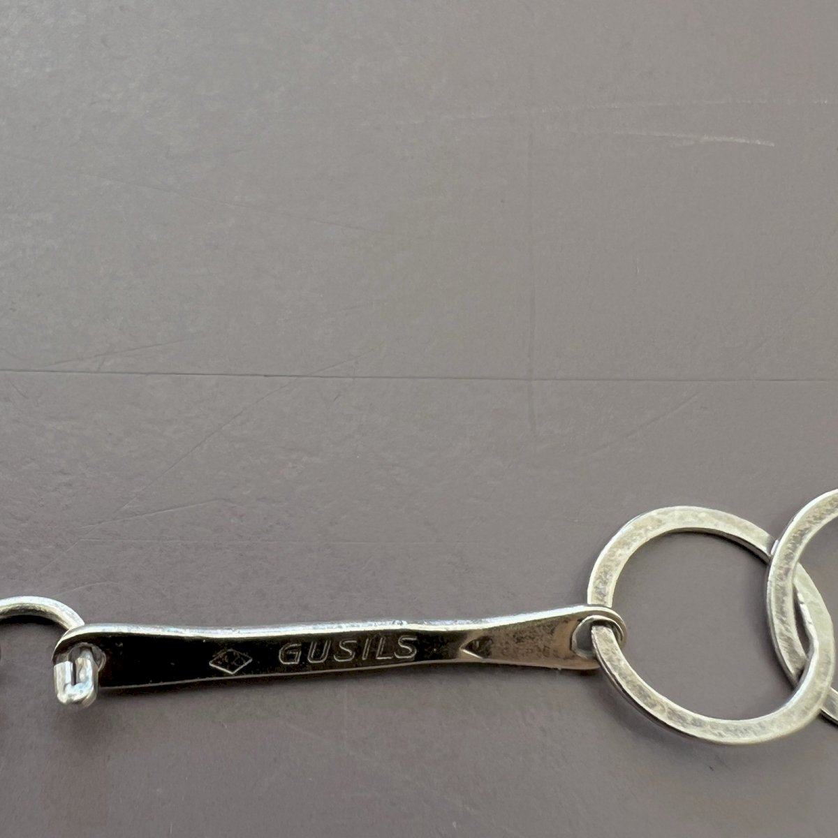 Collier vintage design argent massif créateur « Gusils» vers 1970 Chaine Corde. Ce collier est gravé par la signature du créateur . La chaîne corde semble avoir été restauré voir les photos. ou cela est d’origine, je l’ignore. En tout cas elle est solide. Dimension environ 40,5 cm sur 0,8 cm de large pour les anneaux. Il s’agit d’un petit tour de cou. Le poids environ 5,3 g. État:Occasion: Objet ayant été porté. ...Occasion: Objet ayant été porté. les éventuelles imperfections. Type:Chaîne Métal:Argent massif Pureté métal:925 parties pour 1000