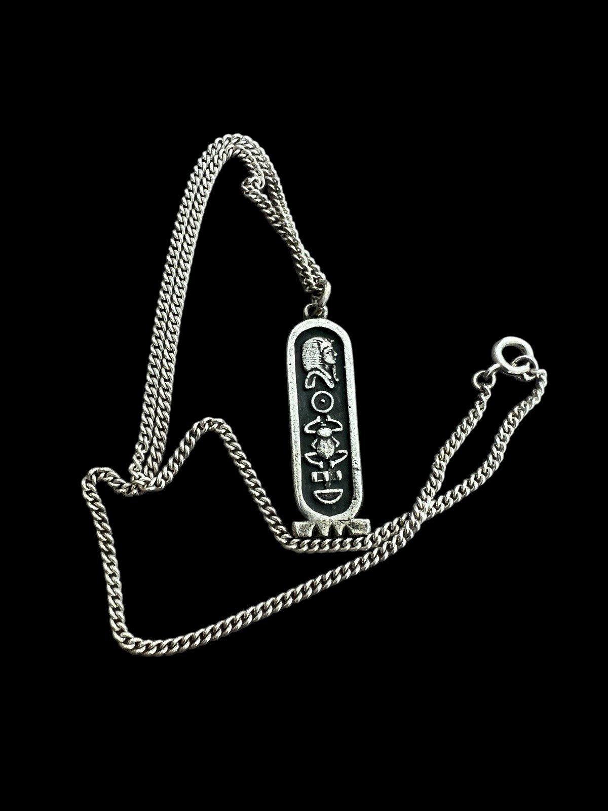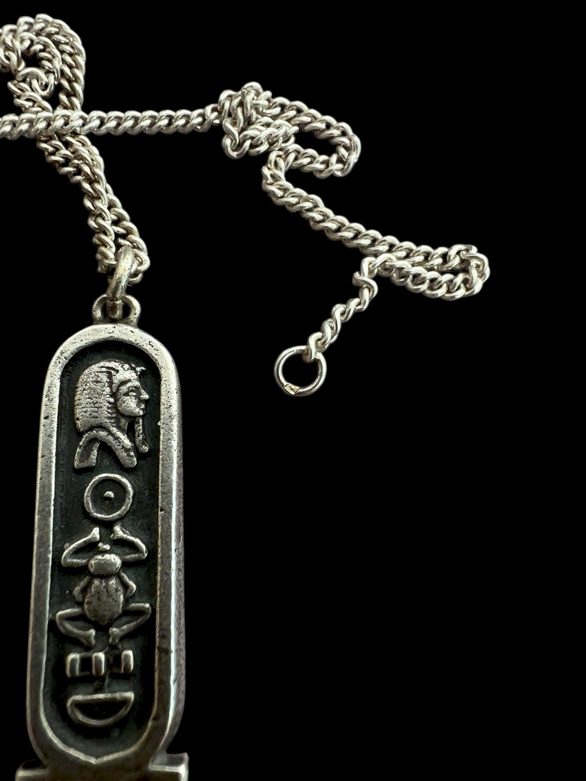 Collier vintage égyptien argent massif Poinçonné unisexe ancien. Daniel, le pendentif et épais environ 2 mm d’épaisseur. Il mesure avec l’anneau environ 4,5 cm de long pour une largeur d’environ 1 cm, voire 1,2 cm plus large. Sa longueur est d’environ 26,5 cm et son poids environ 13 g. Bon état vintage. État:Occasion: Objet ayant été porté. ...Occasion: Objet ayant été porté. les éventuelles imperfections. Métal:Argent massif Type:Collier mi-long Métal de base:Argent sterling, 925 parties pour 1000 Pureté métal:925 parties pour 1000