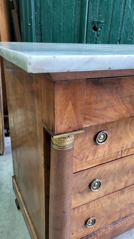 COMMODE EMPIRE EN NOYER PLATEAU MARBRE BLANC DU XIX ème SIECLE