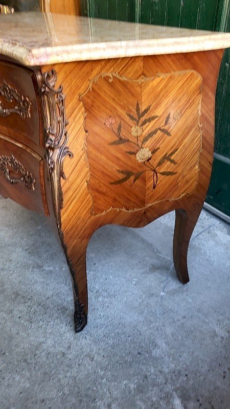 COMMODE EN BOIS DE ROSE 2 TIROIRS PLATEAU EN MARBRE OCRE