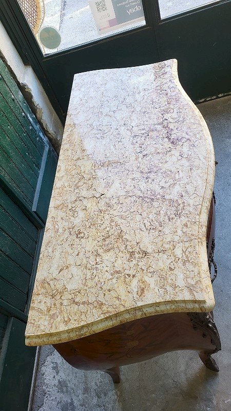 magnifique commode en bois de rose 2 tiroirs avec un marbre ocre elle est en très bon état elle a juste 3 petites réparations qui ont été faites sur de tout petits bouts de placage elle a une clef elle mesure 121 cm de large sur 54.7 cm de profondeur et 84 cm de haut Je reste à votre disposition pour toutes vos questions ou par email ou par téléphone : . pour d'autres photos plus grandes envoyez moi votre email. pour une livraison entre le sud et paris demandez  le prix a JM TRANSPORTS au 06.12.25.48.48. pour une autre destination contactez moi. Type:Commode, Chiffonnier Sous-type:2 tiroirs Matière:BOIS DE ROSE