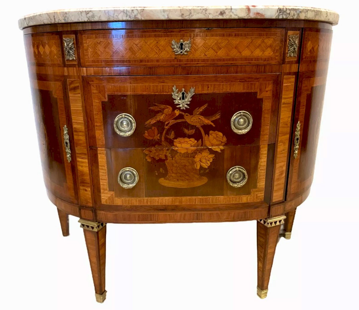 Commode En Demi Lune De Style Louis XVI En Marqueterie Fin Du XIX Siècle