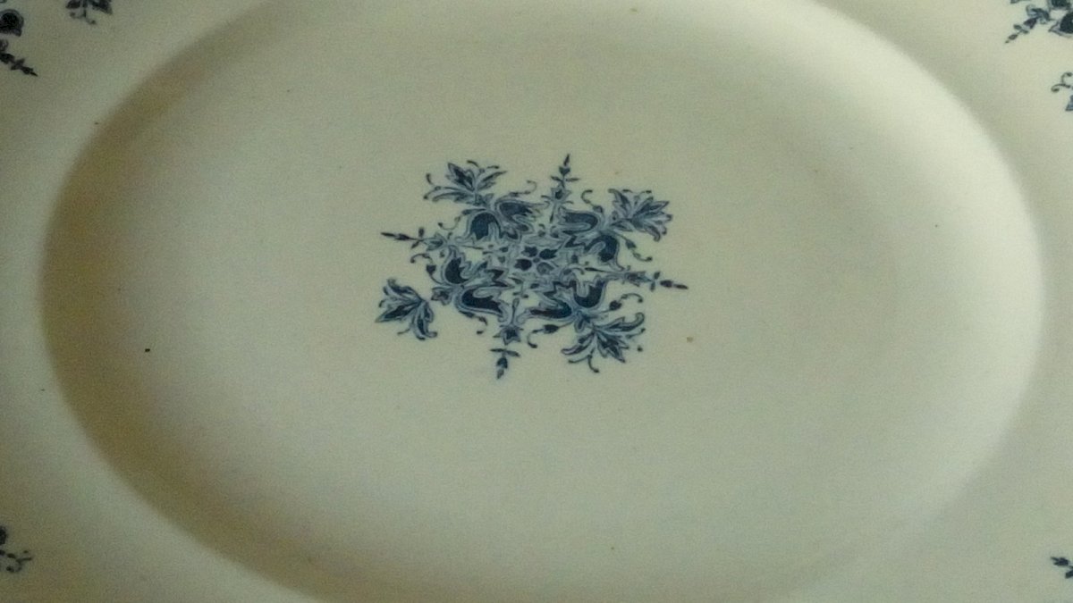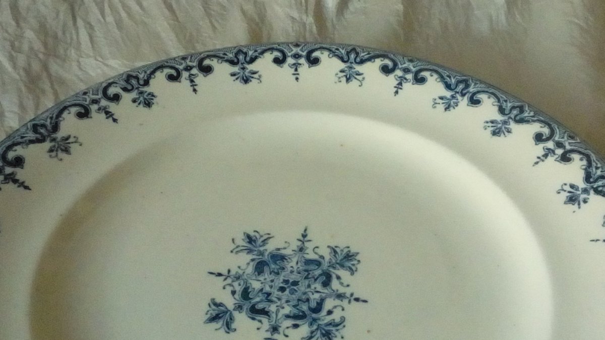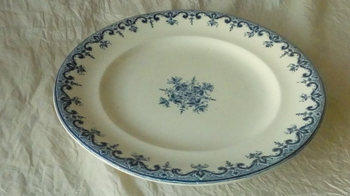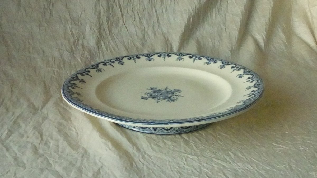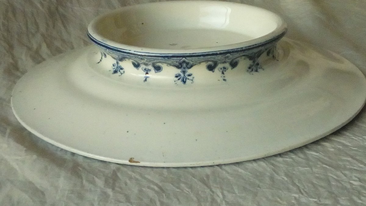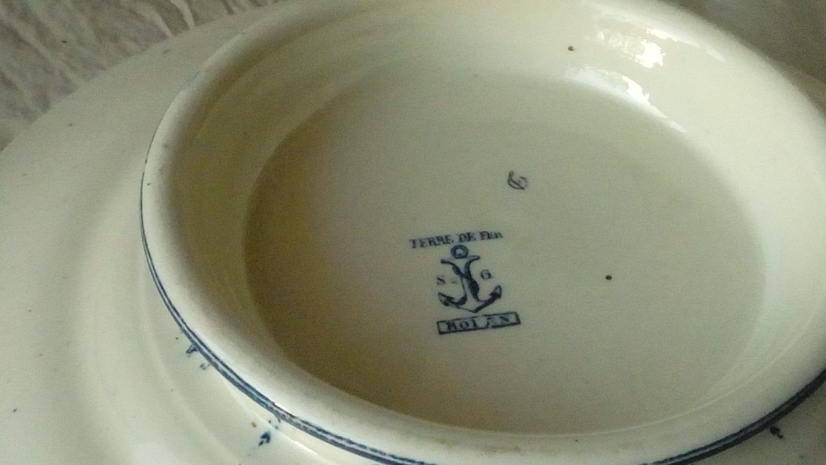 TRES BEAU COMPOTIER EN FAIENCE TERRE DE FER S.G MODÈLE ROUEN DIAMETRE 23.50 cm HAUTEUR 4 cm EN BON ETAT Pays d'origine:France