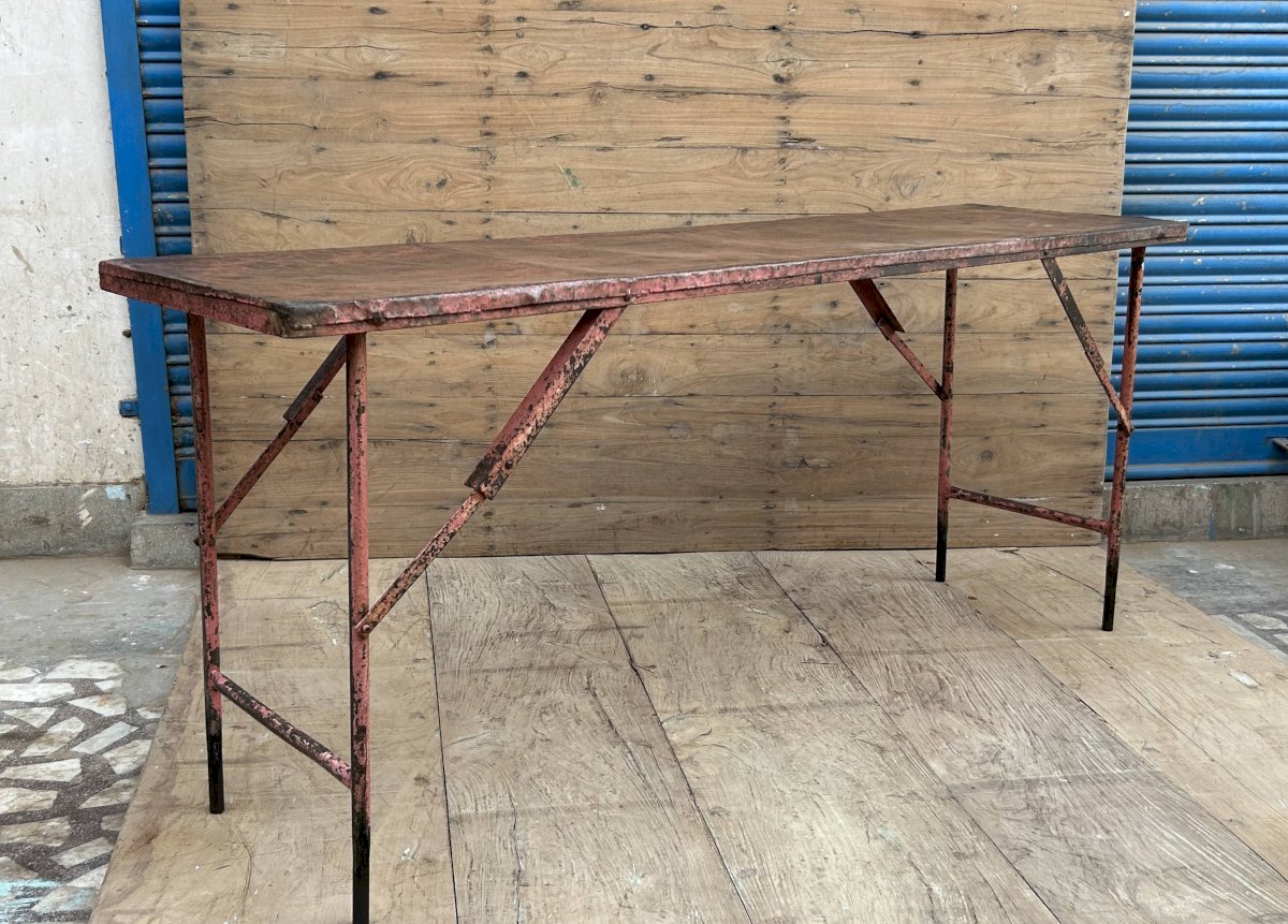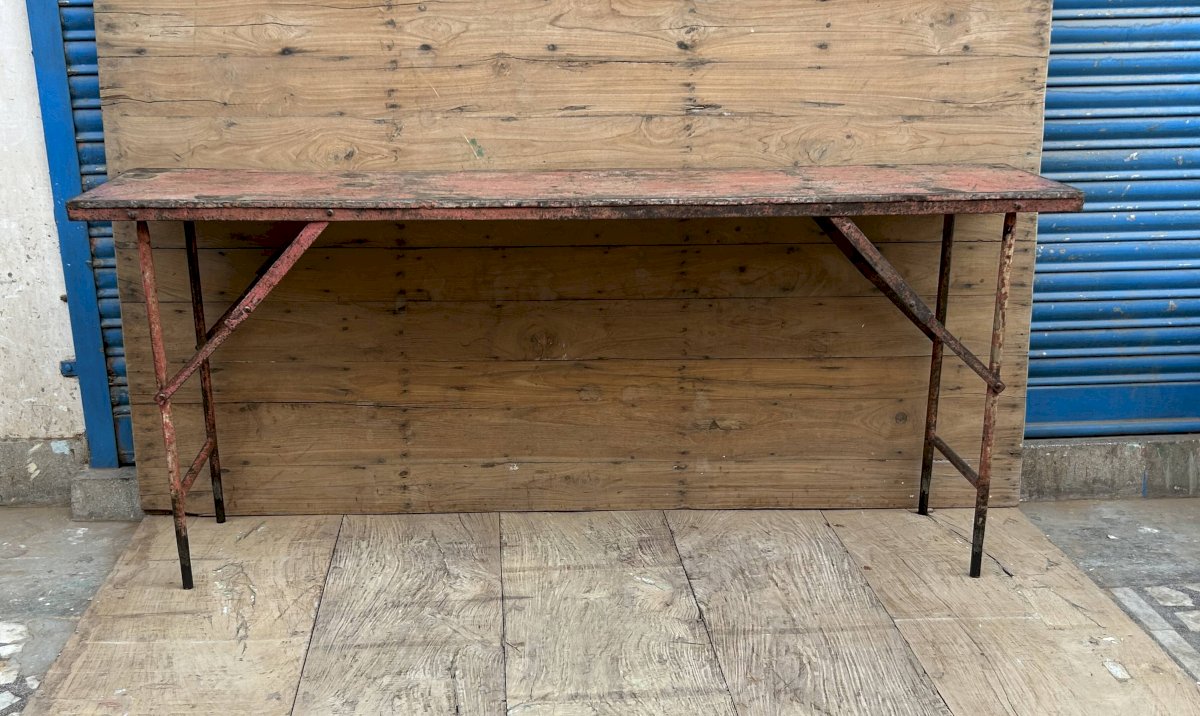 Console datelier pliante en métal avec patine dorigine