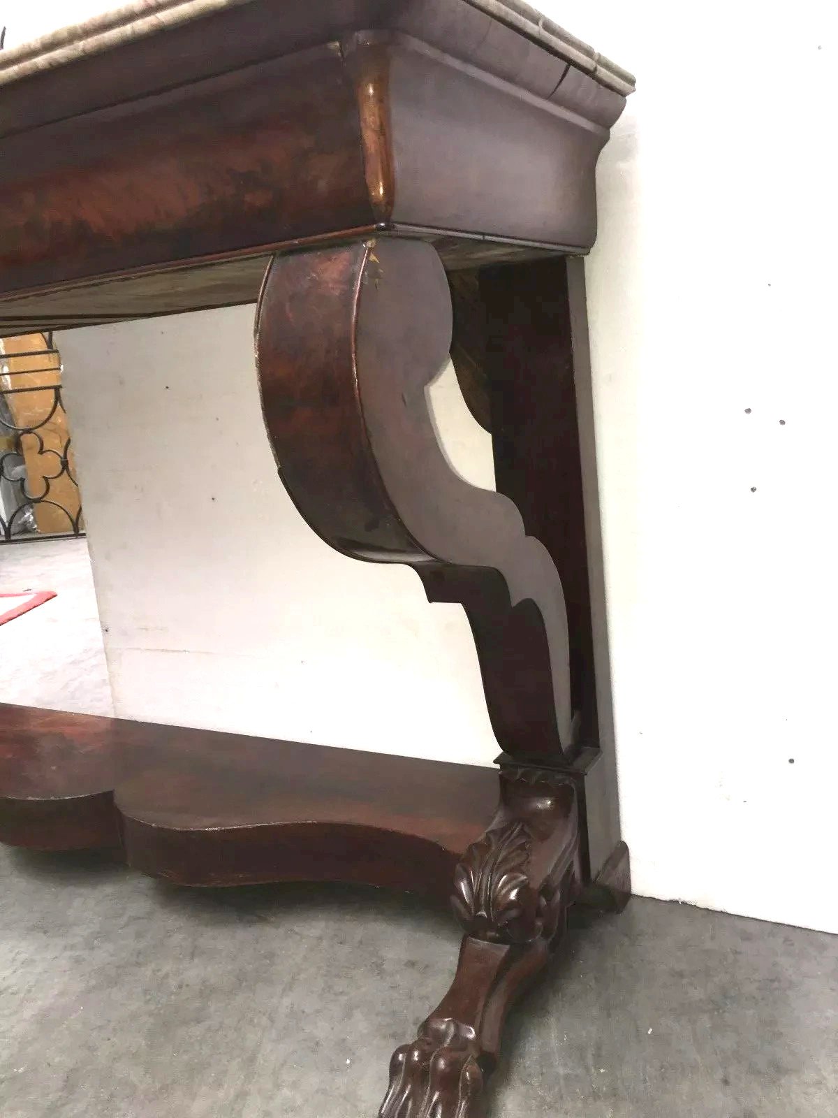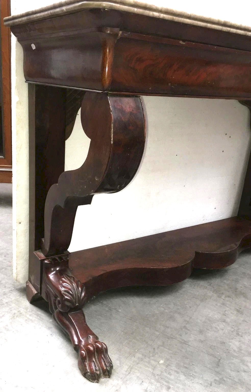 Console Louis Philippe en acajou et placage d'acajou Un tiroir a doucine en ceinture Jambage en console a pieds griffes Dessus de marbre brèche Epoque Louis Philippe Bon état général Dimension L 130 x H 86 x 45 cm Type:Table Période:XIXème et avant Sous-type:Console Hauteur:86 Matière:Acajou Style:Louis Philippe Longueur:130 Largeur:45 Forme:Rectangulaire